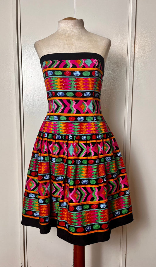 Vintage 1980's "A.J. Bari" Graphic Strapless Fit n Flare Mini Dress