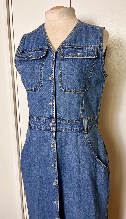 Vintage Y2K "Bill Blass" Pearl Snap Medium-Wash Denim Dress