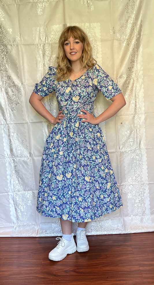 Vintage 1980’s "Laura Ashley" Indigo with Yellow & Purple Floral Dress
