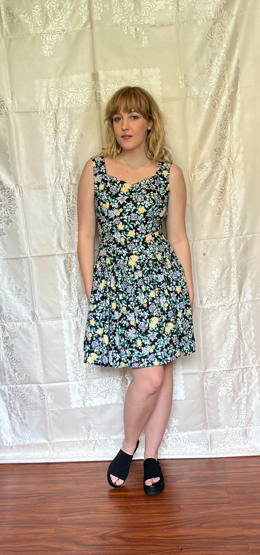 Vintage 1980’s "Laura Ashley" Black with Blue & Yellow Floral Dress