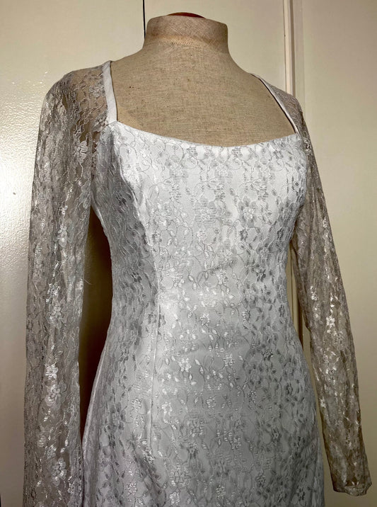 Vintage 1990's White Lace Long Sleeve Fitted Mini Dress