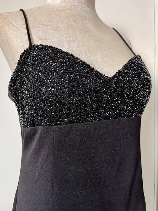Vintage 1990's Black Sequin Fishtail Maxi Dress