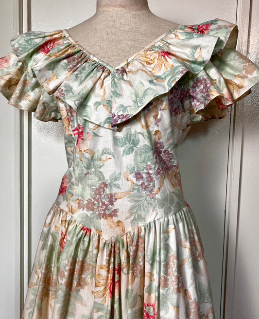 Vintage 1990's "All That Jazz" Cabbage Rose Tie-Back Maxi Dress