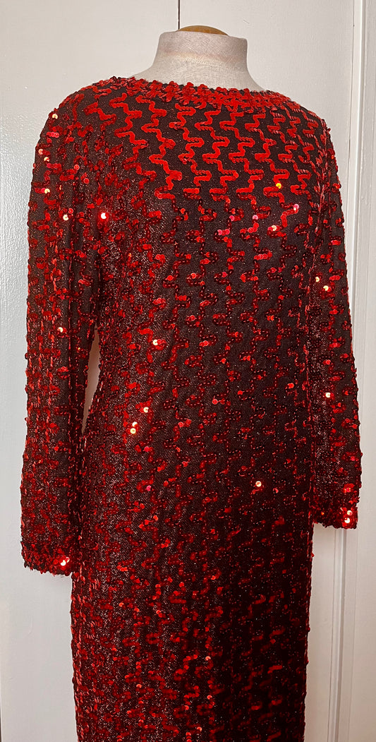 Vintage 1970's "Lilli Diamond" Red Sequin Long Sleeve Maxi Dress