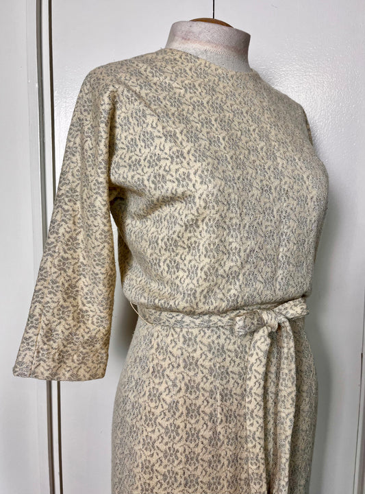 Vintage 1960's "Carl Naftal Originals of California" Silver and Cream Snowflake Motif Wiggle Dress