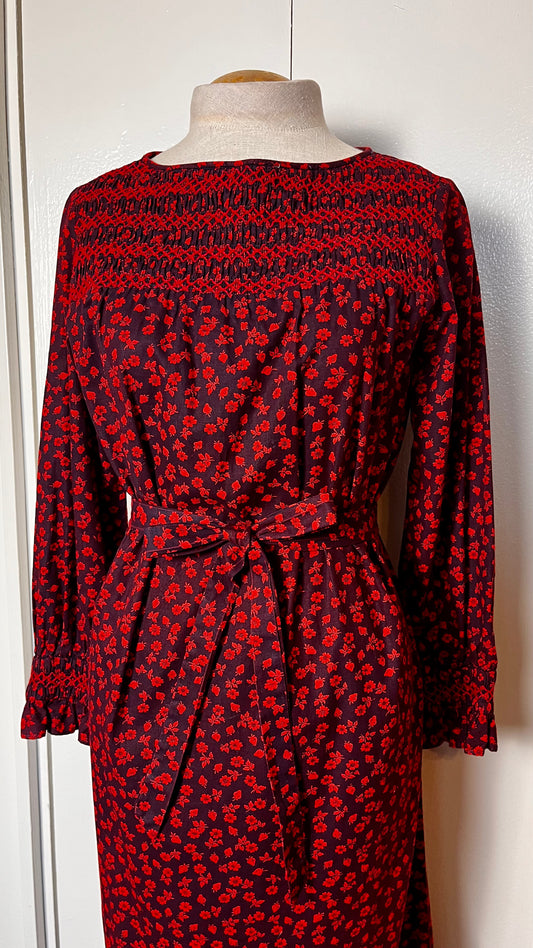 Vintage 1970's "Yankee Pedlar Ltd. by The Country House" Strawberry-Print Long Sleeve Maxi Dress with Belt