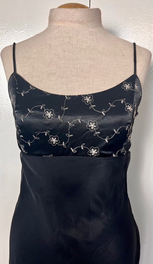 Vintage 1990's "Kiki" Black & Silver Embroidered Satin and Chiffon Maxi Dress
