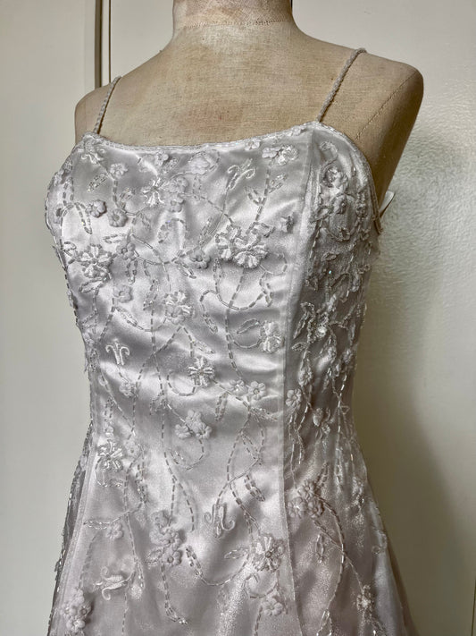 Vintage Y2K "Nina Canacci" White Flowers Beaded Gown