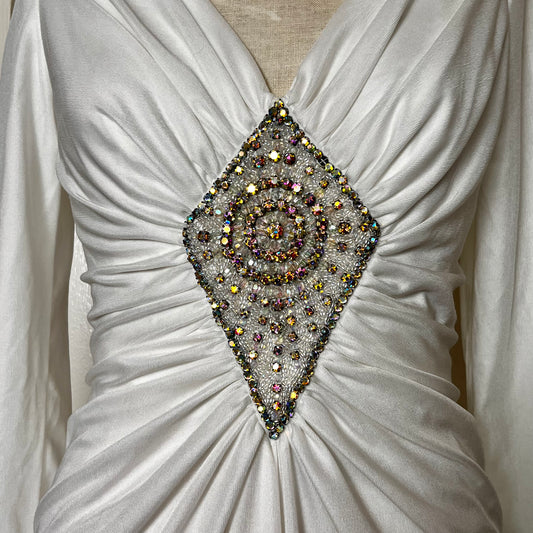 Vintage 1970's "Jack Bryan" White Stretch & Rhinestone Maxi Dress (Deadstock/NWT)