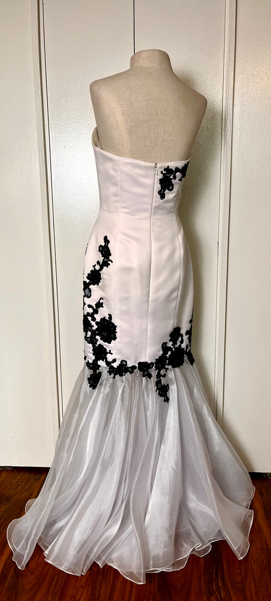Vintage Y2K "Jovani" White w/ Black Lace Strapless Gown