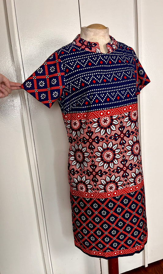 Vintage 1960's Red & Blue Abstract Shift Dress