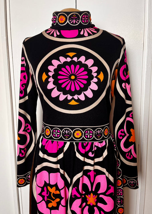 Vintage 1970's "Mr. Dino" Black & Pink Dress