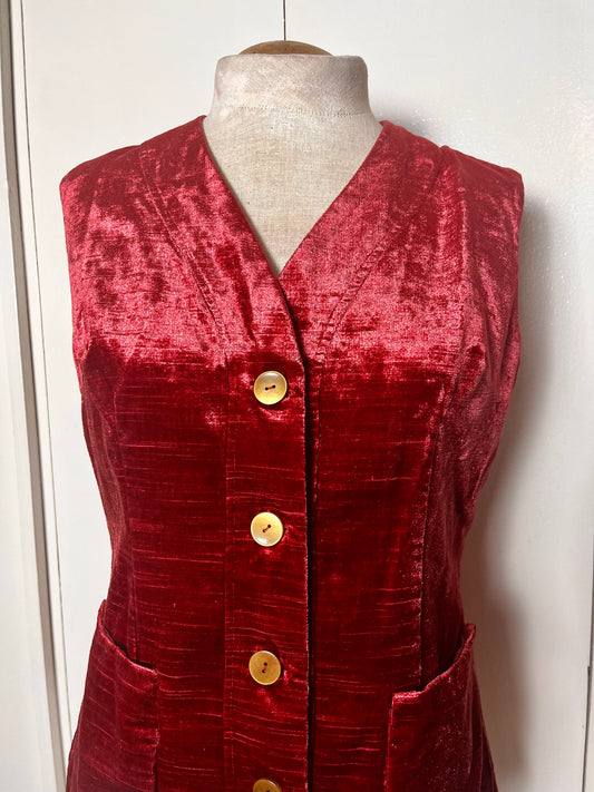 Vintage 1970's Cranberry-Red Crushed Velvet Waistcoat Vest