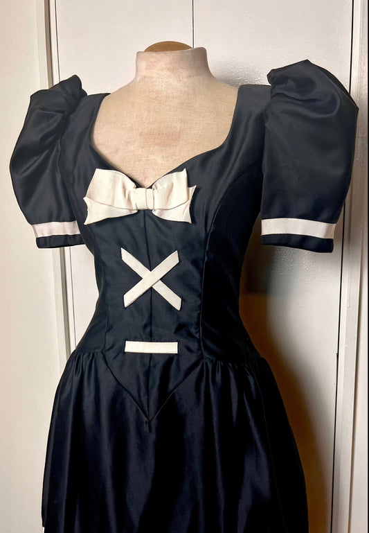 Vintage 1980's "Victor Costa" Black Bow Corset Dress
