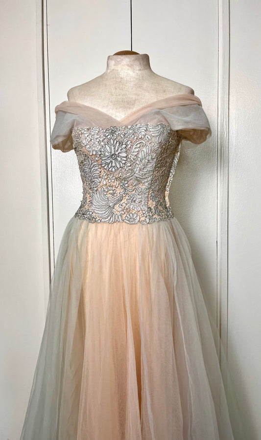 Vintage 1950's "Anne Verdi of New York" Blush Pink & Blue Tulle Gown