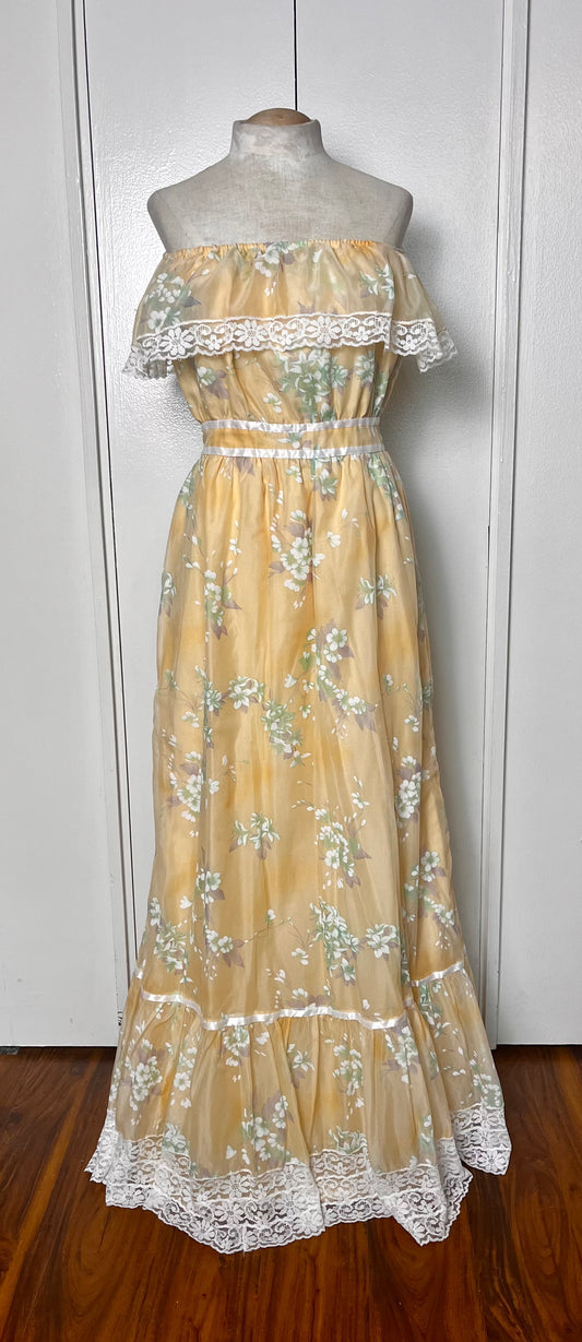 Vintage 1970's Off-the-Shoulder Marigold Gown