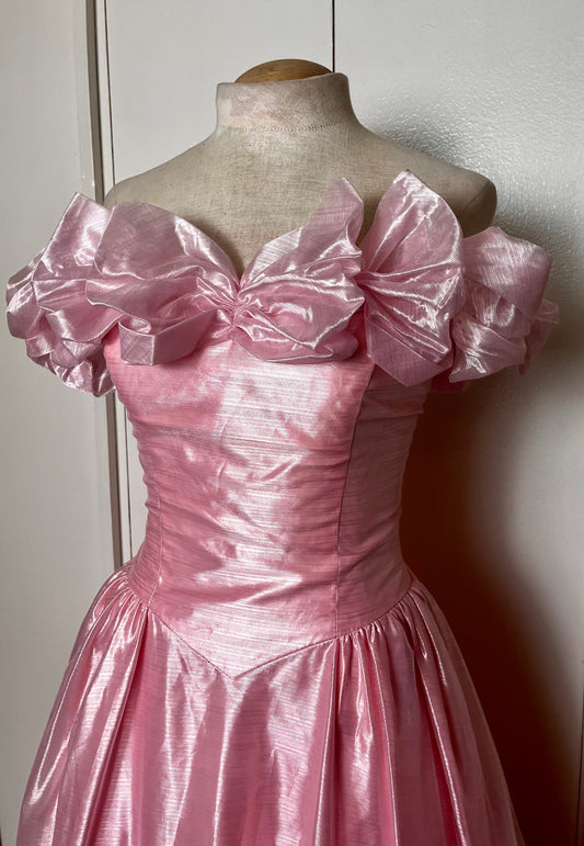 Vintage 1980's Iridescent Pink Ruffles Gown