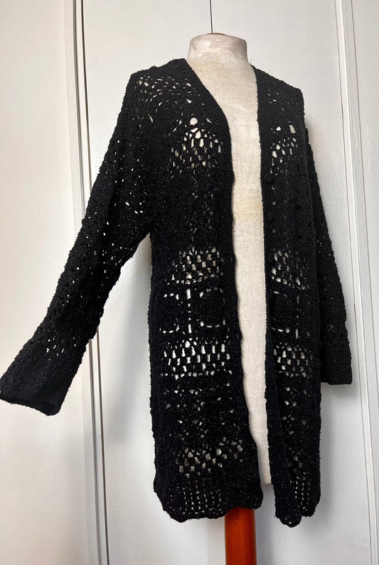 Vintage 1990's "Liz Claiborne" Glittery Black Crochet Duster Cardigan