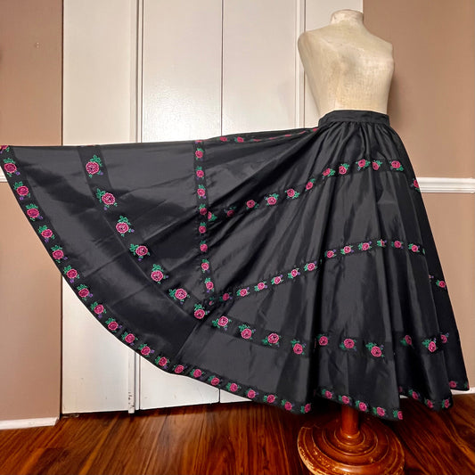 Vintage 1990's does 50's "Mondi" Black Rose Trim Circle Skirt