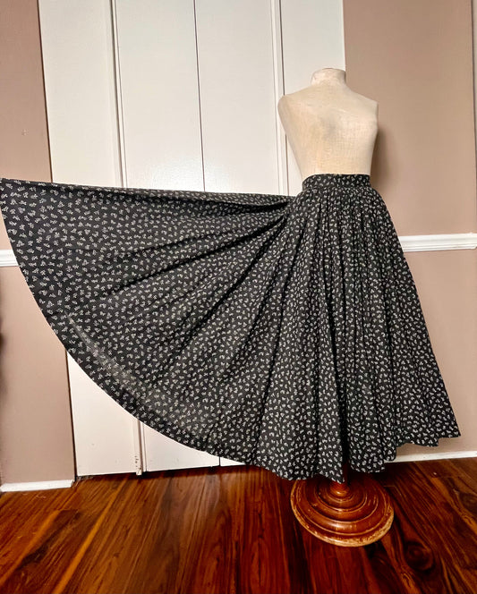 Vintage 1980's "Go Vicki!" Black Calico Circle Skirt