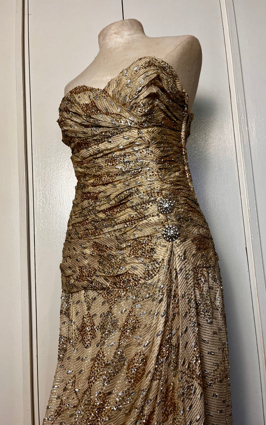 Vintage 1990's "Martyn's" Gold Glitter Evening Gown