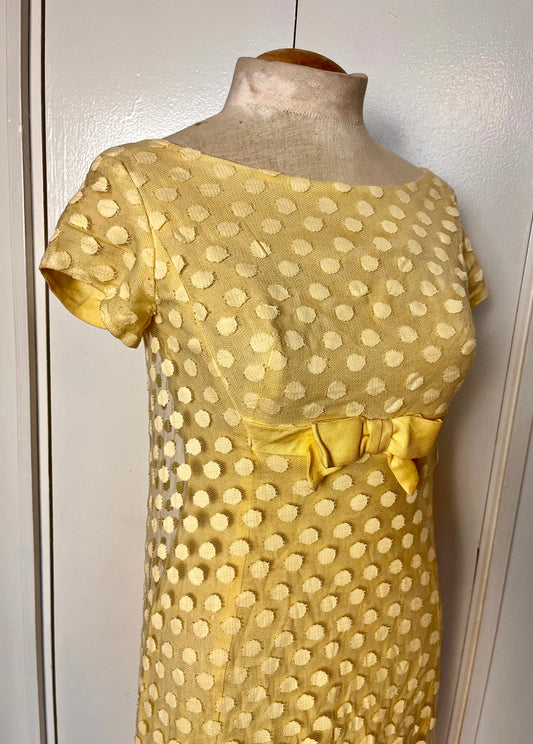 Vintage 1960's Yellow Swiss Dot Maxi Dress