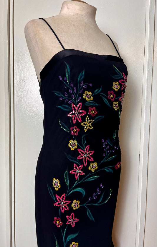 Vintage 1990's "Niki" Black/Sequin Bias Cut Silk Dress