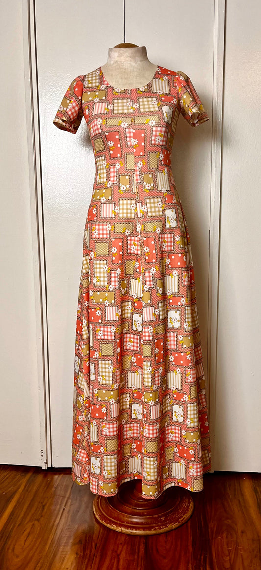 Vintage 1970's Patchwork-Daisy Maxi Dress
