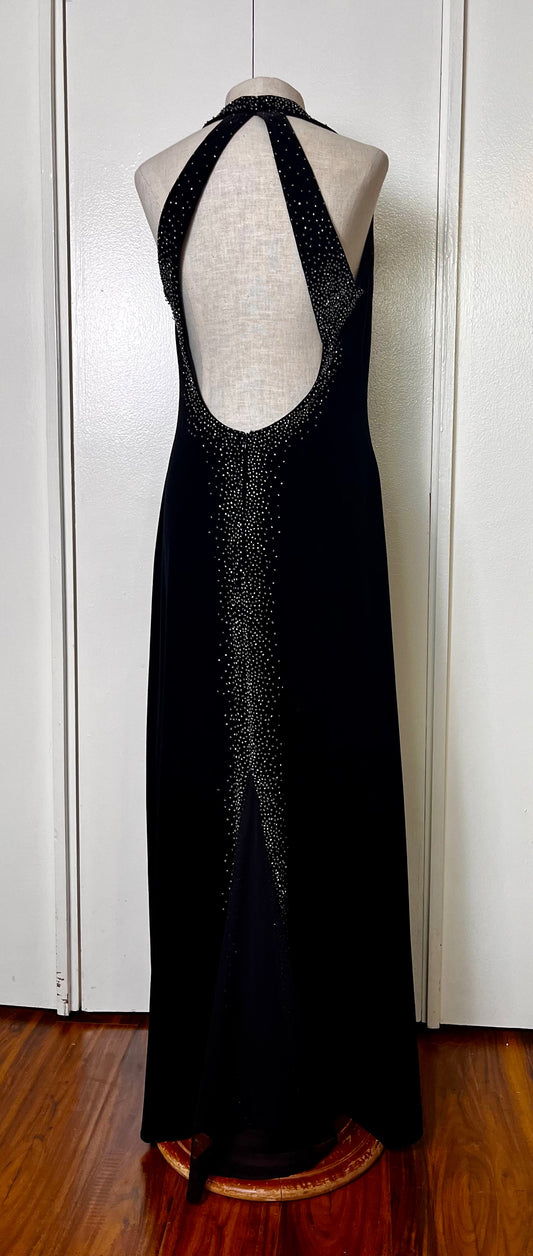Vintage 1990's "Dave & Johnny" Halter Sequin Low Back Black Jersey Maxi Dress