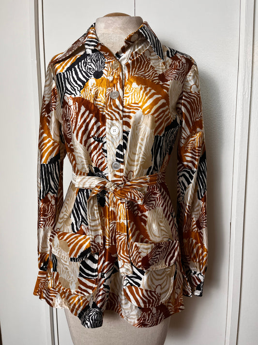 Vintage 1970's "Lady Manhattan" Zebra Print Nylon Blouse