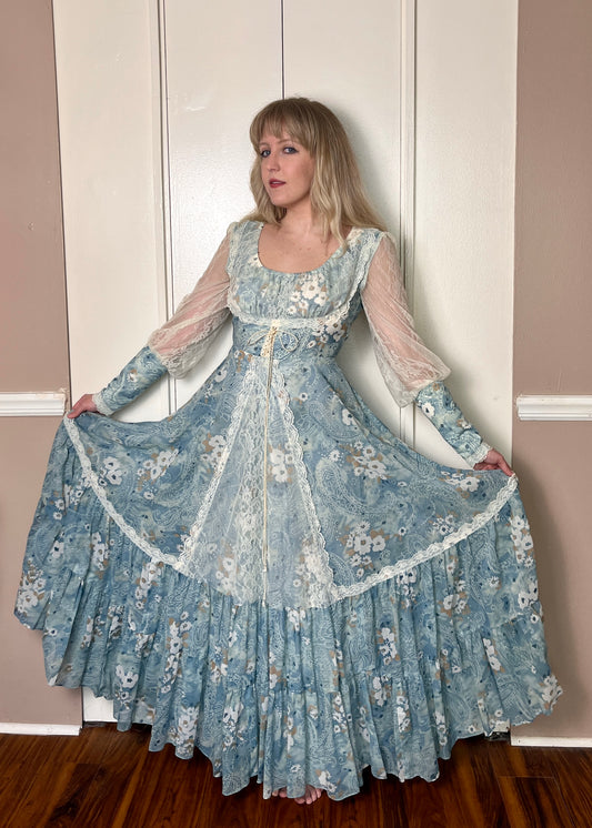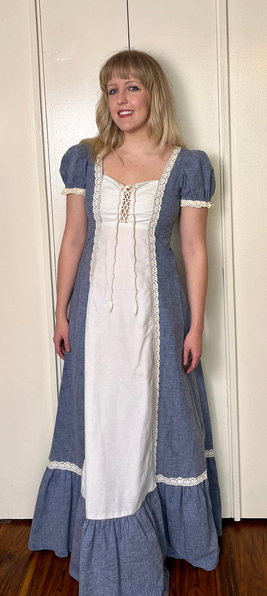Vintage 1970's "Gunne Sax by Jessica McClintock" Blue (River Princess) Maxi Dress
