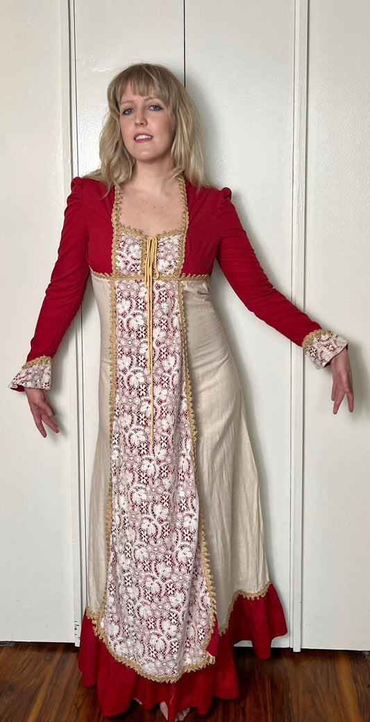 Vintage 1960's "Gunne Sax by Jessica McClintock" (Black Label) Red (Crimson Princess) Maxi Dress