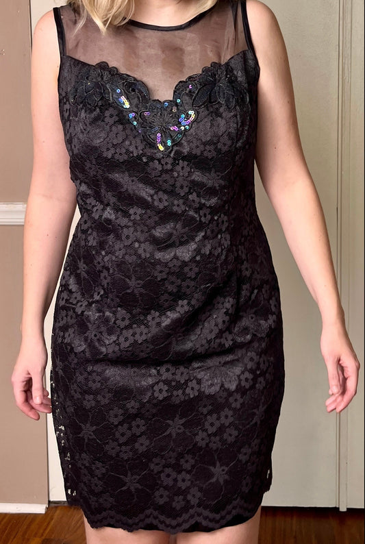 Vintage 1990's "Gunne Sax by Jessica McClintock" Black Lace Sequin Mini Dress