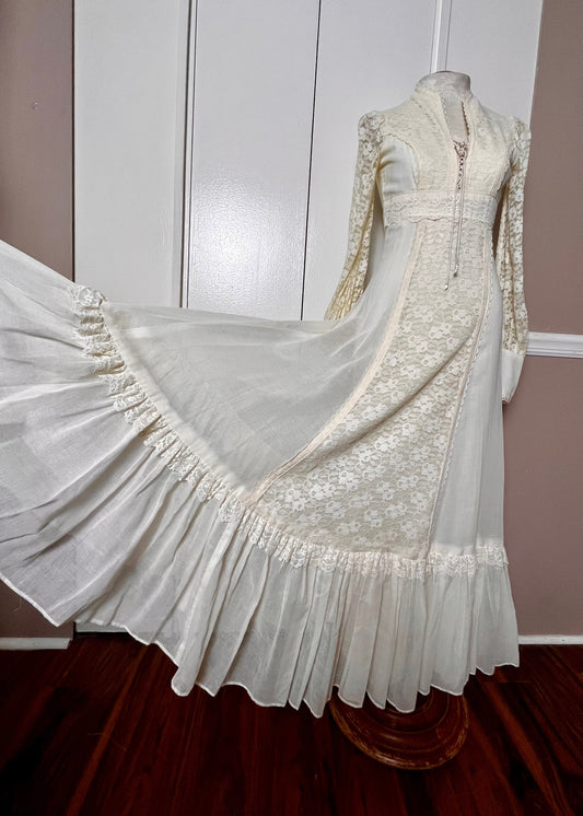 Vintage 1970's "Gunne Sax by Jessica McClintock" Ivory Long Sleeve Maxi Dress