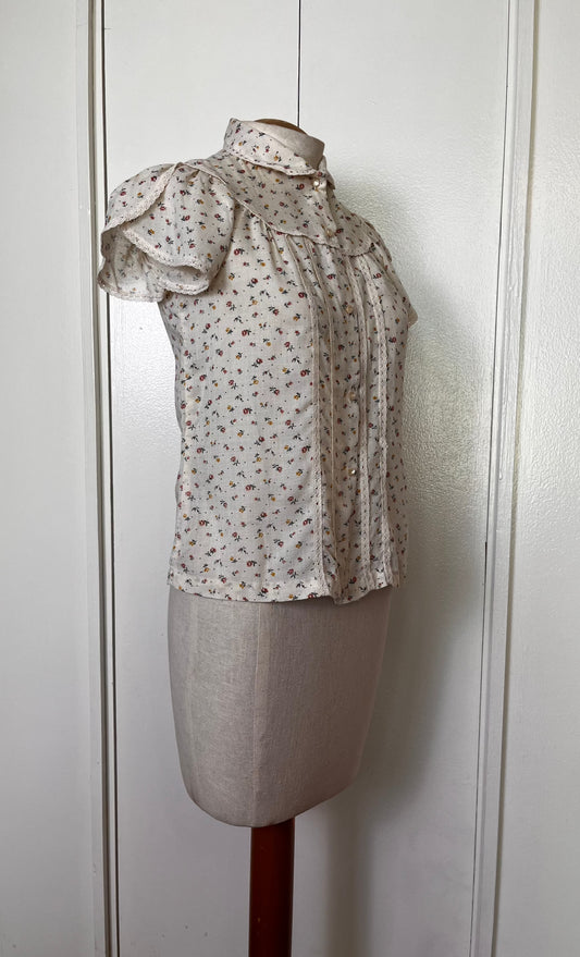 Vintage 1970's "Spare Parts"Calico Short Sleeve Button-Front Prairie-Style Blouse