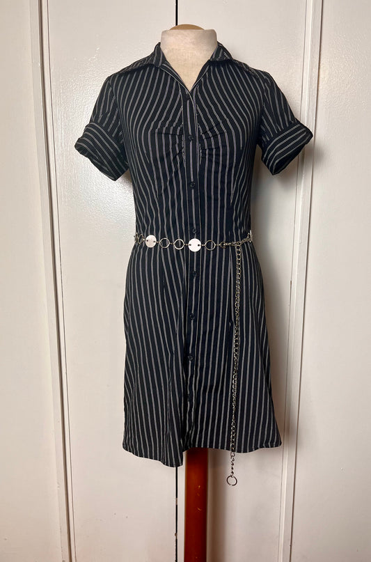 Vintage Y2K "Byer California IZ" Black Pinstripe Button-Front Mini Dress