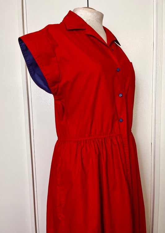 Vintage 1980's Red & Blue Button-Front Vented Day Dress