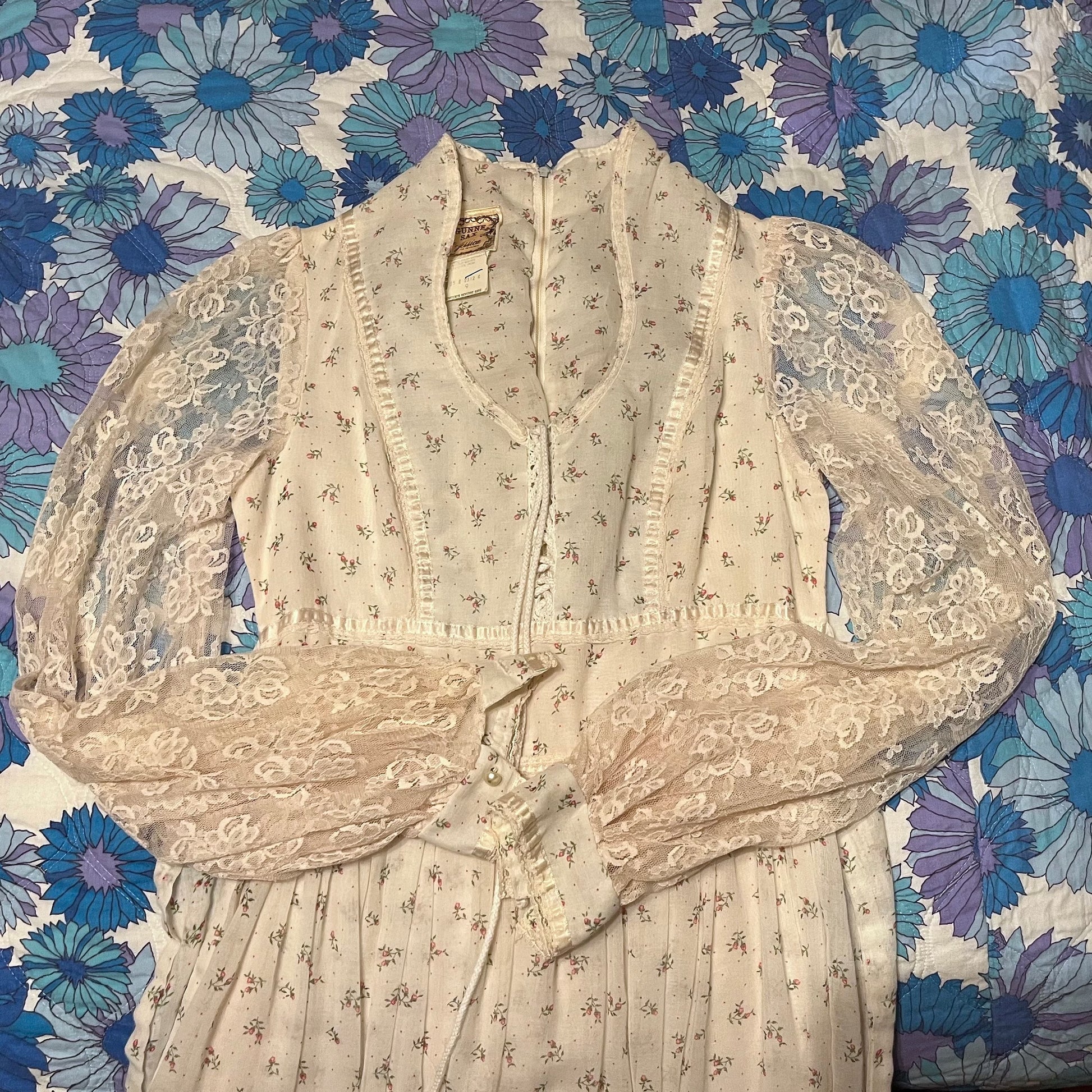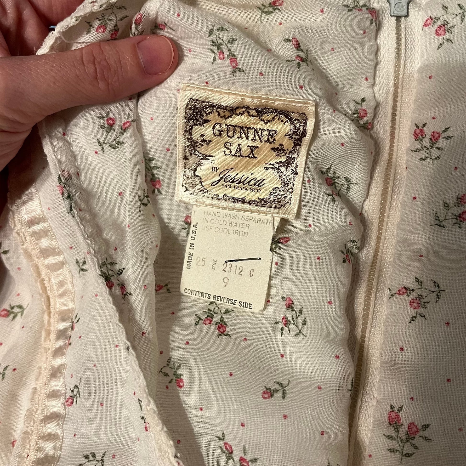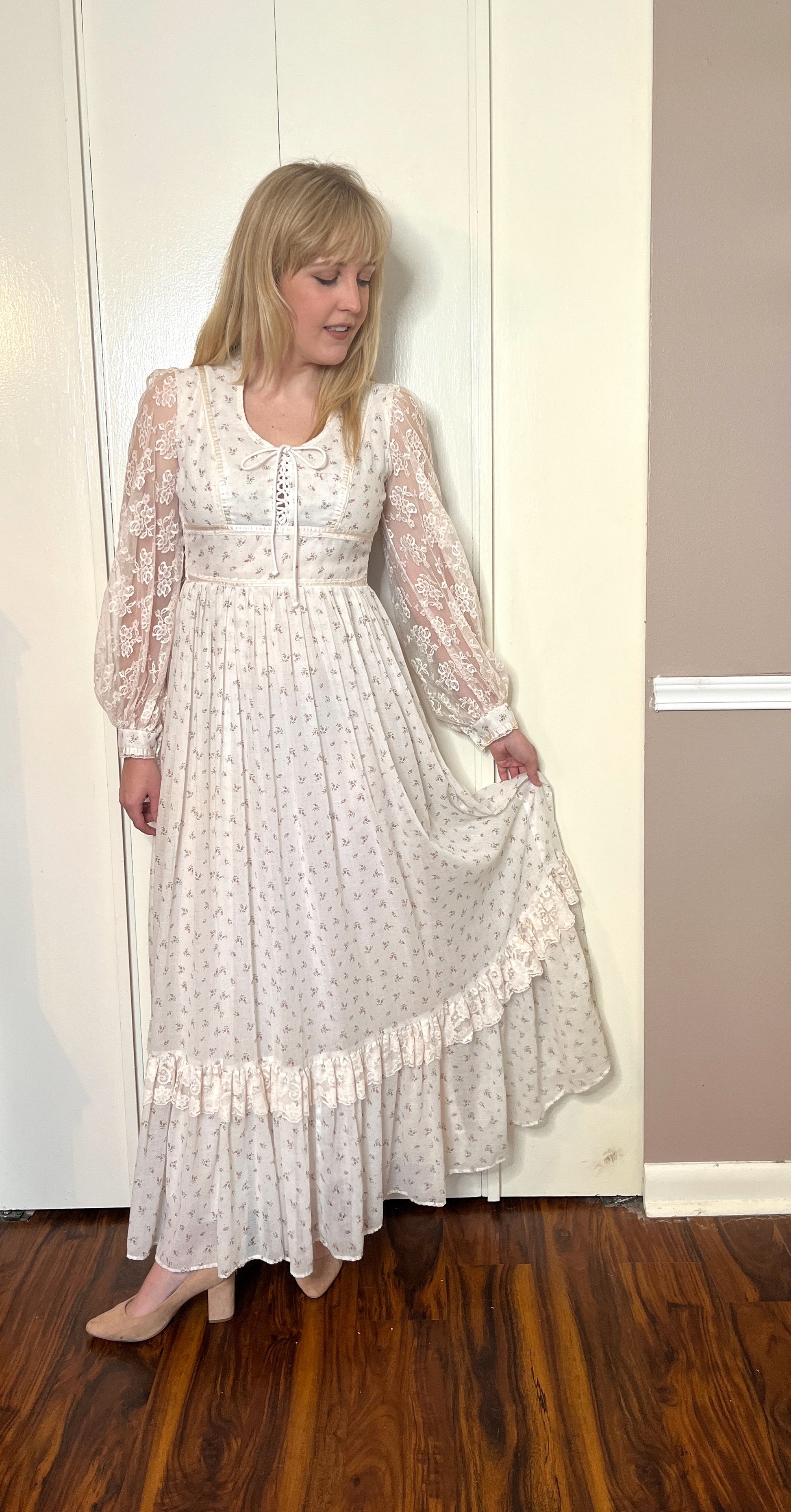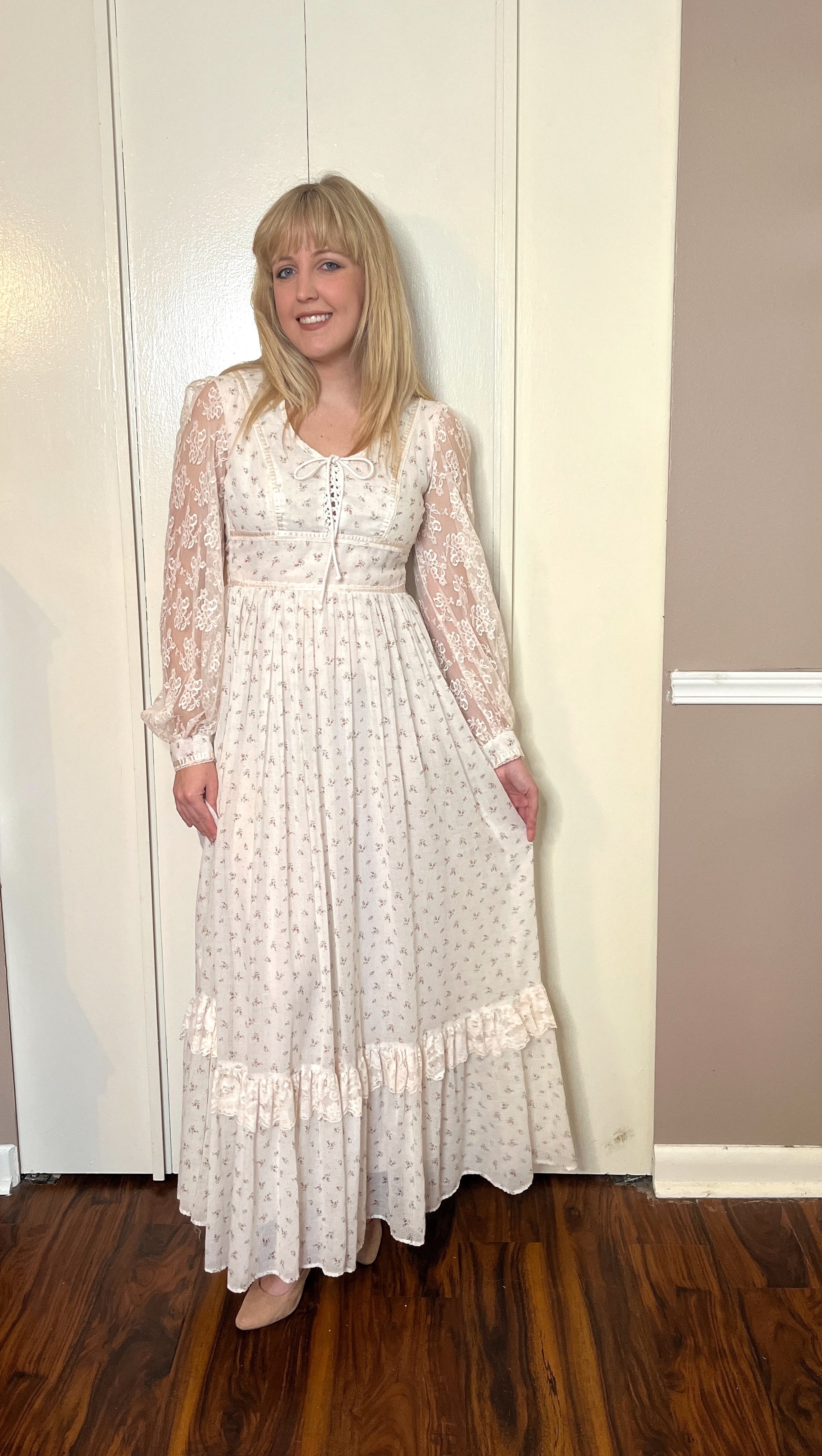 Vintage 1970’s "Gunne Sax by Jessica McClintock" White and Rosebuds Long Sleeve Maxi Dress