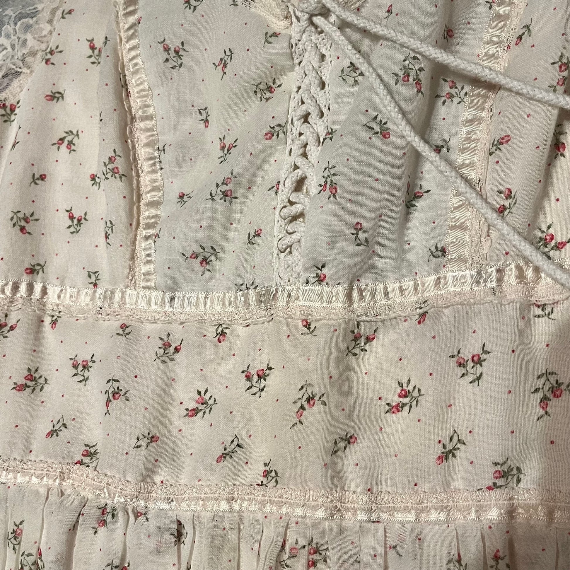 Vintage 1970’s Gunne Sax by Jessica McClintock White w/ Pink Rosebuds Long Sleeve Maxi Dress