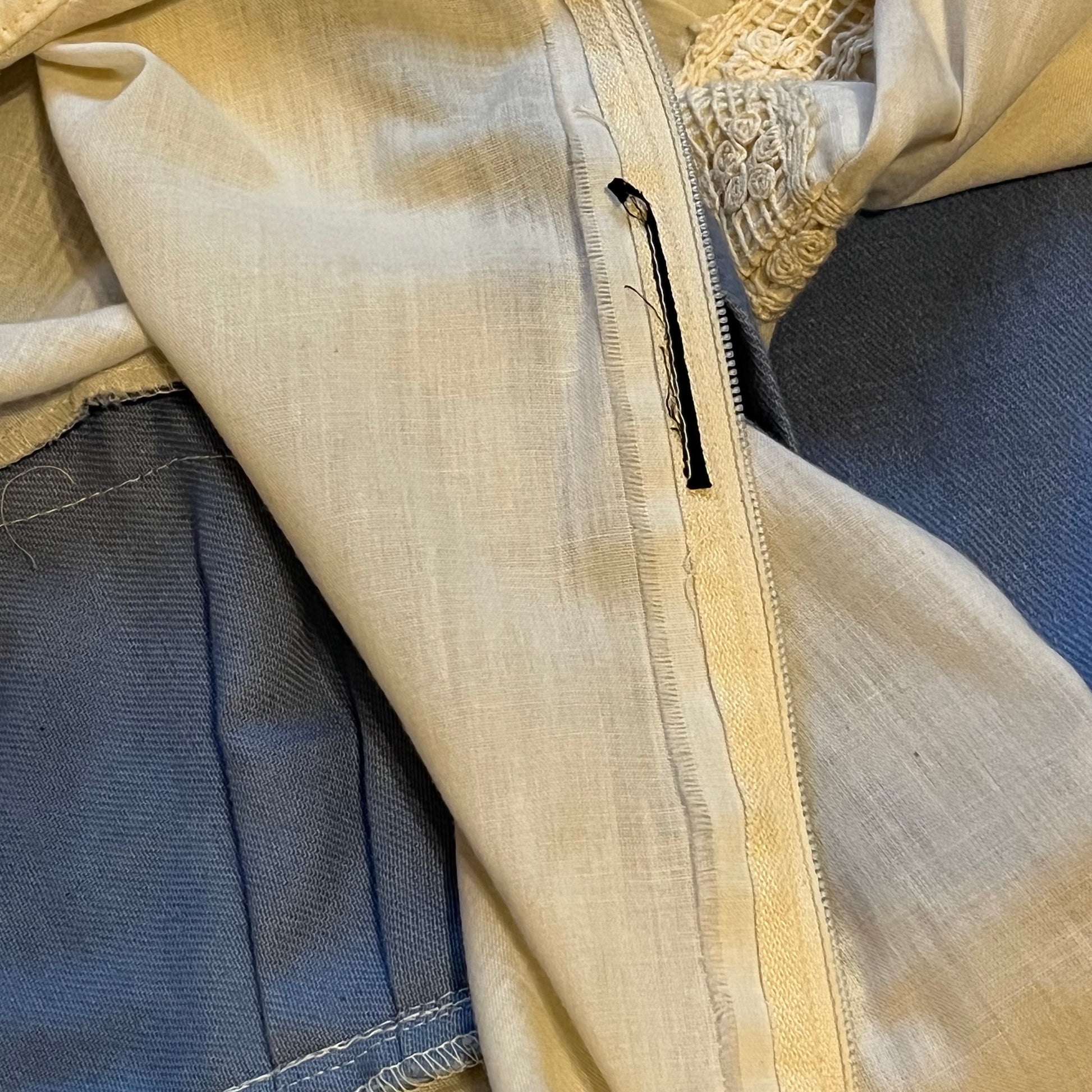 Good condition. A remnant of the brand tag remains. Size tag has been cut. This was common for this black label design as the black tag would show thru onto the back due to the lightweight nature of the cotton muslin used. In good vintage condition with no major flaws. We replaced the buttons on the wrist cuffs to match.  If you would like to request photos of the dress with its tags intact (from another fellow collector who also owns this dress) to have as reference, please message us on IG or send us an email and we will happily assist.