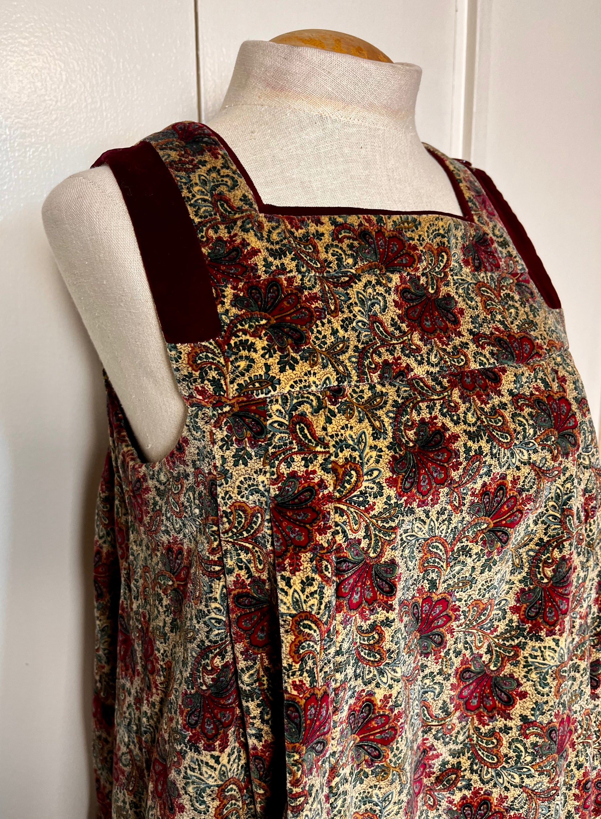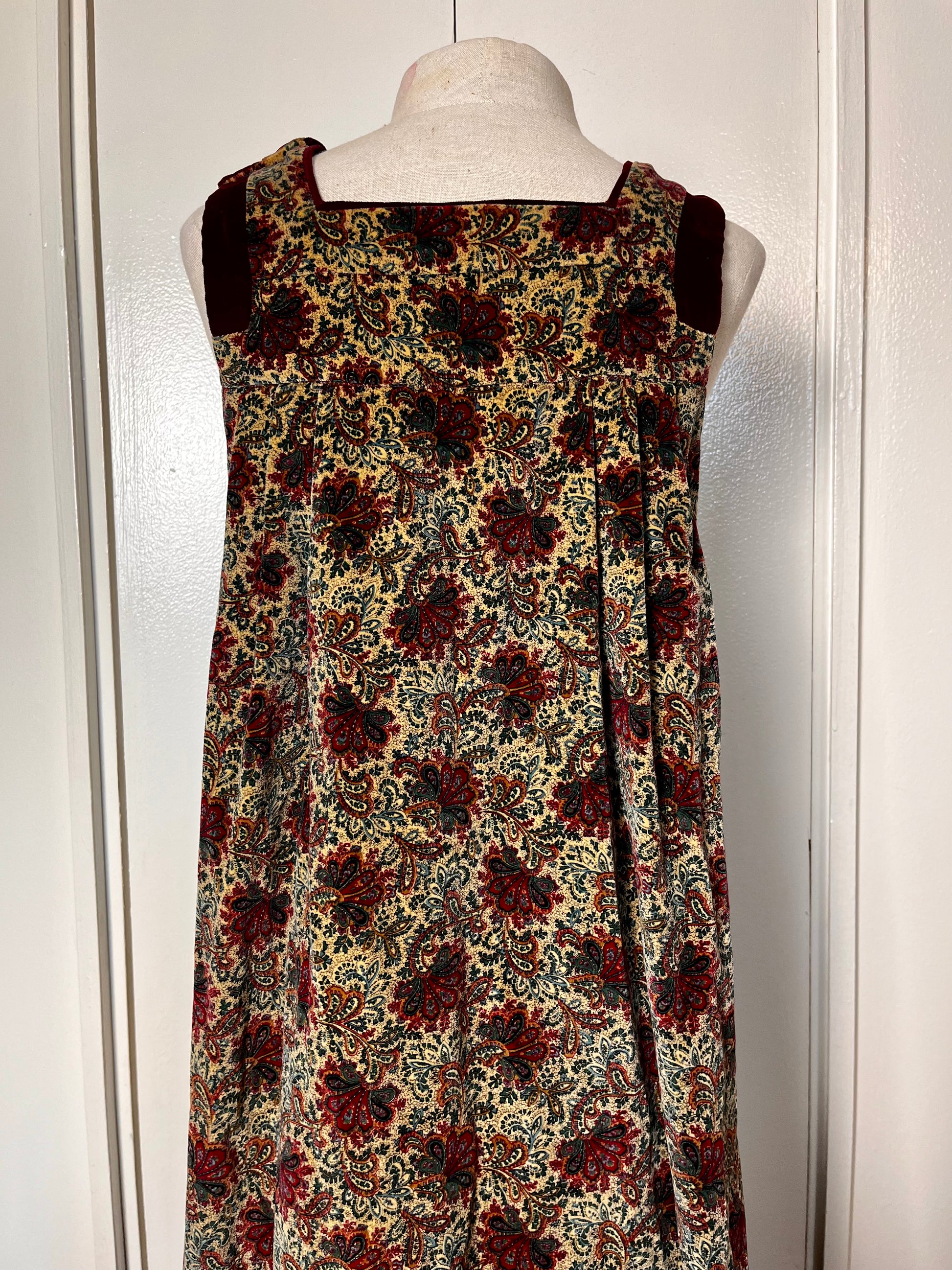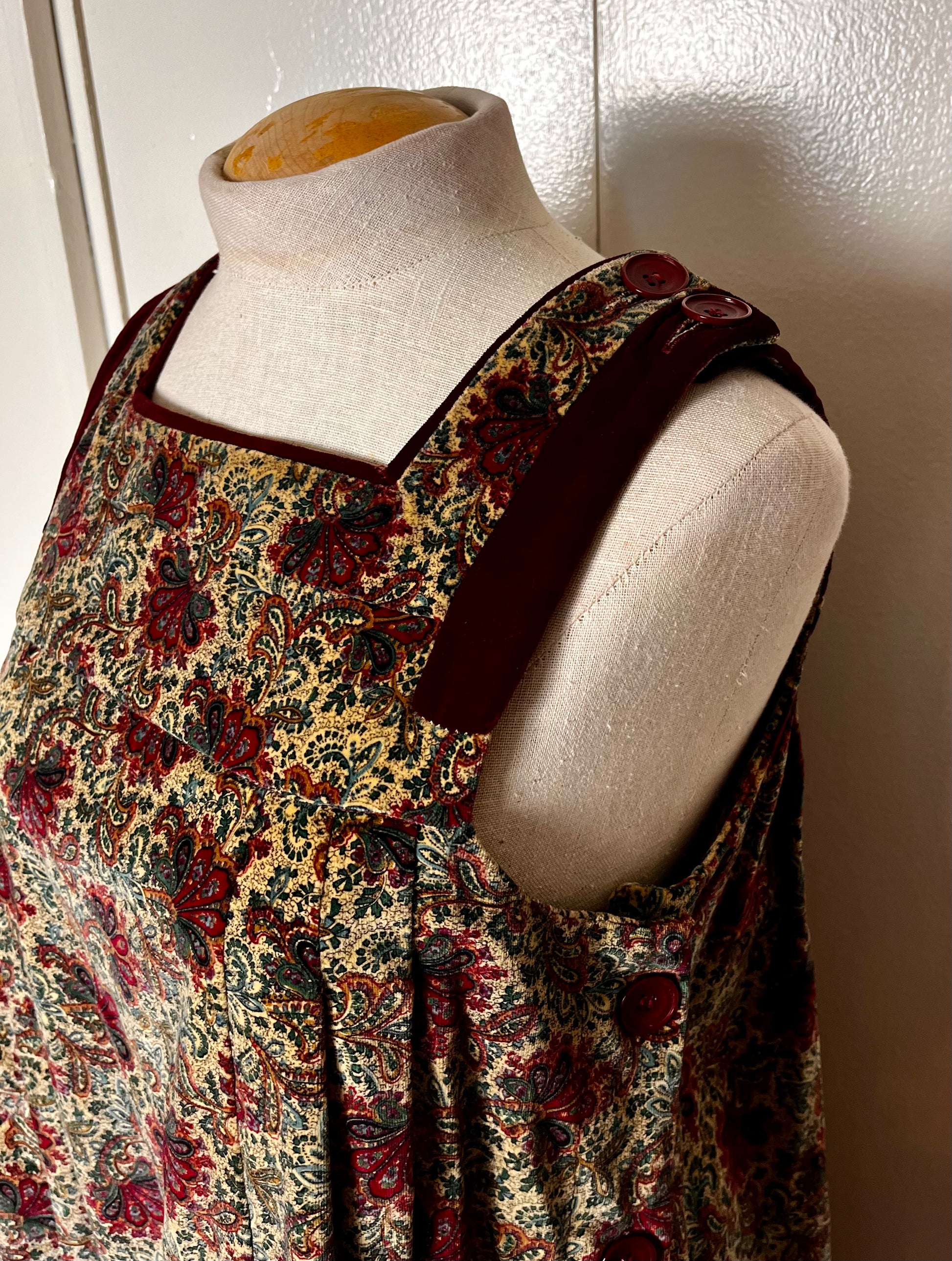 Vintage 1980's Paisley & Velvet Side-Button Closure Tent Jumper Dress