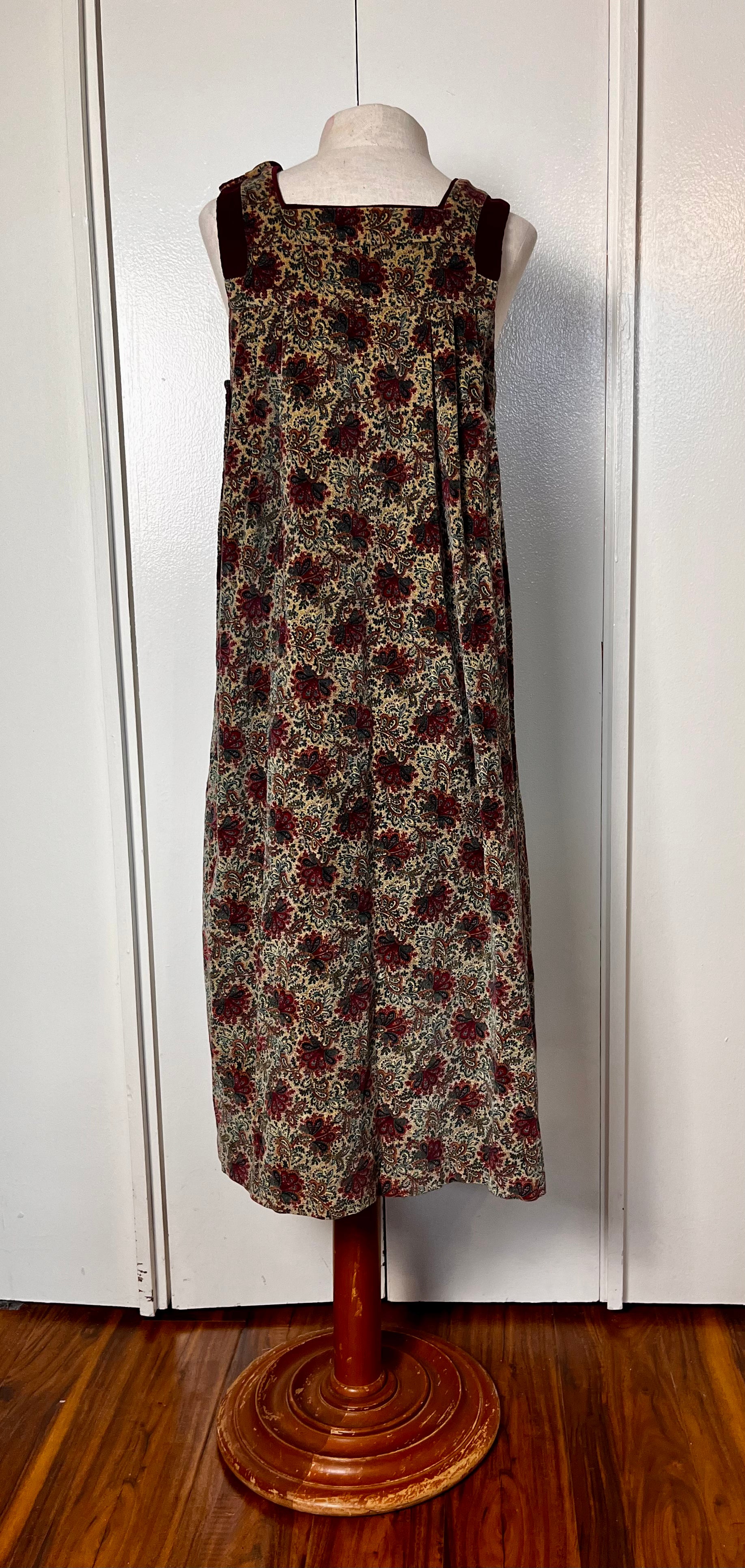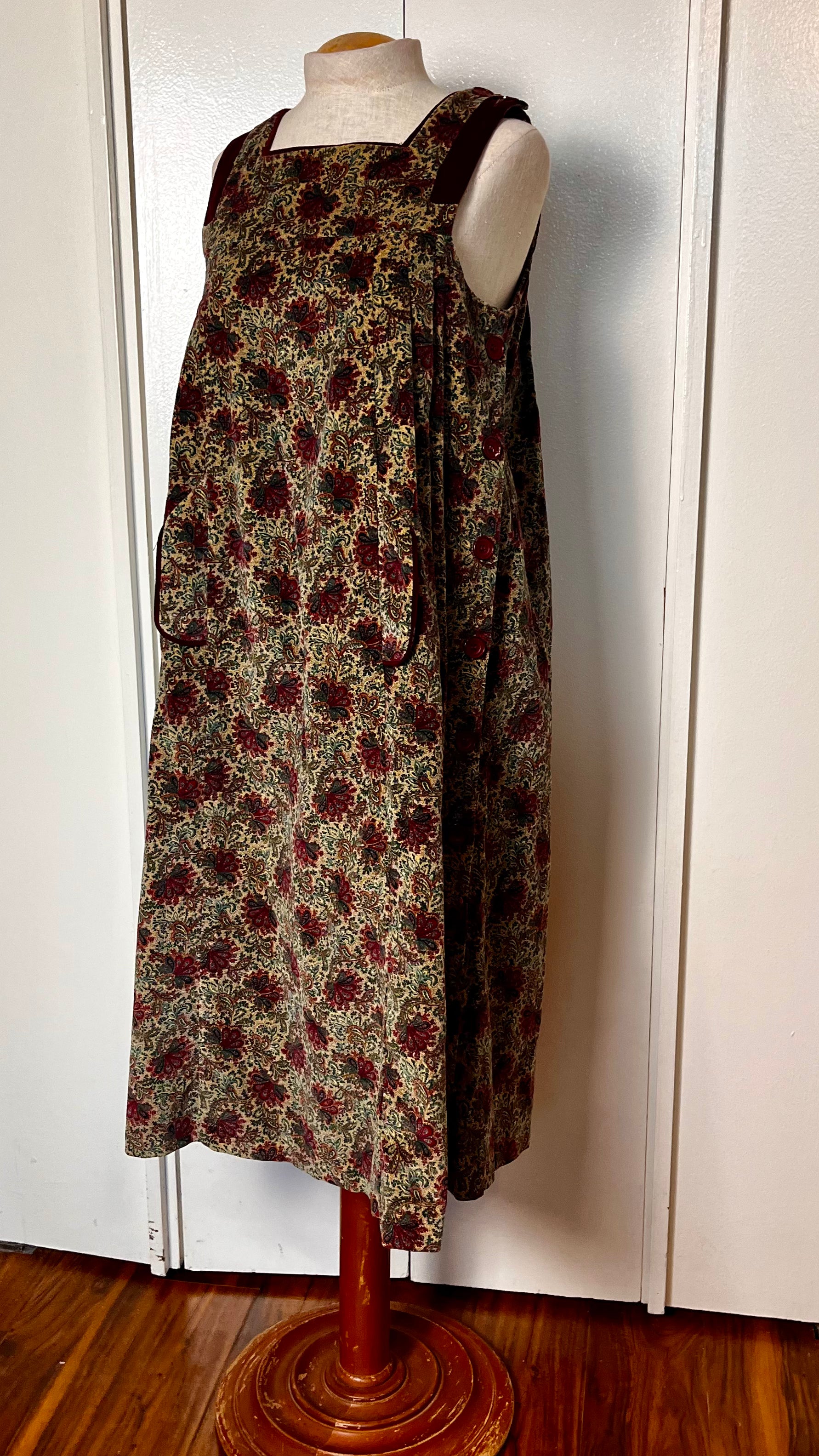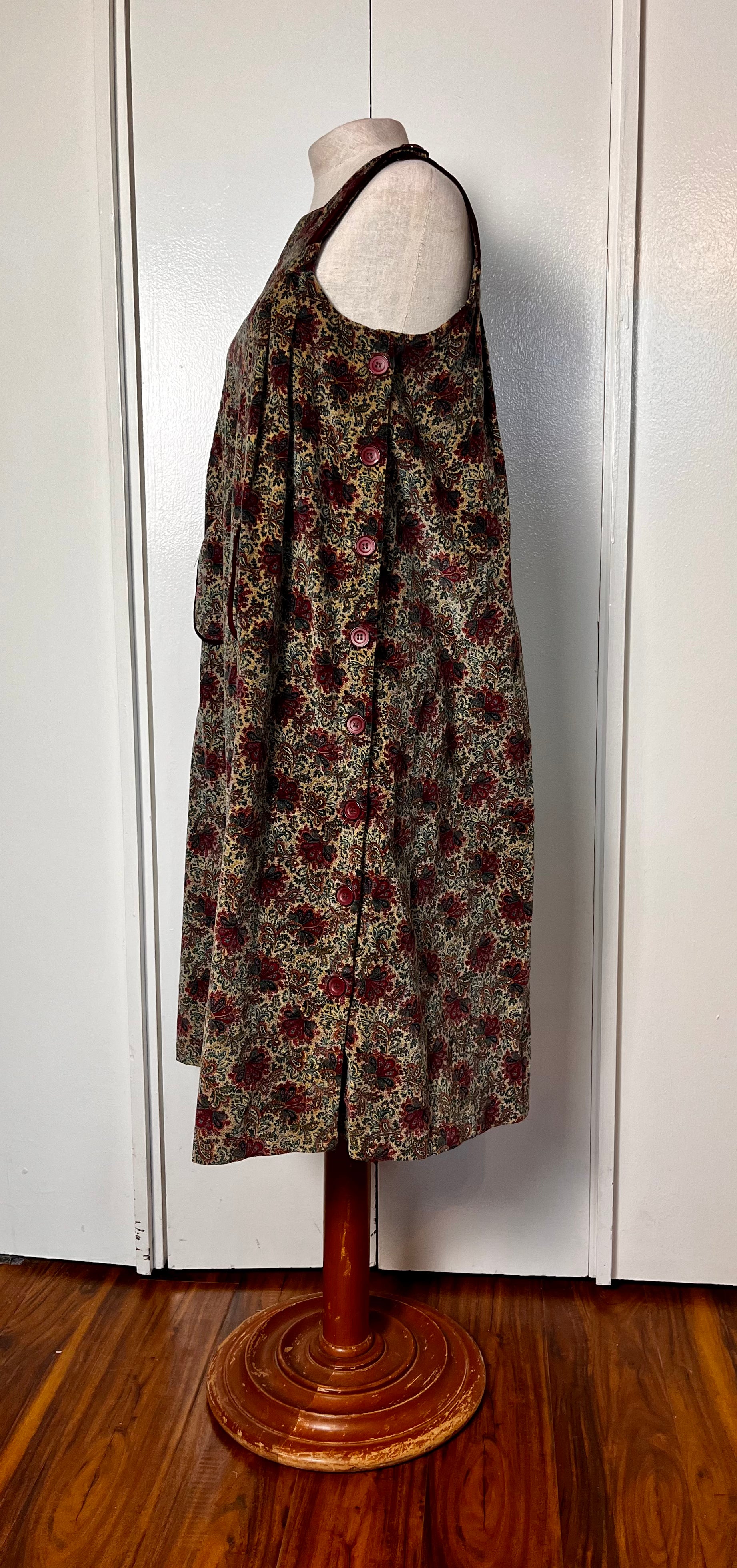 Vintage 1980's Paisley & Velvet Side-Button Closure Tent Jumper Dress