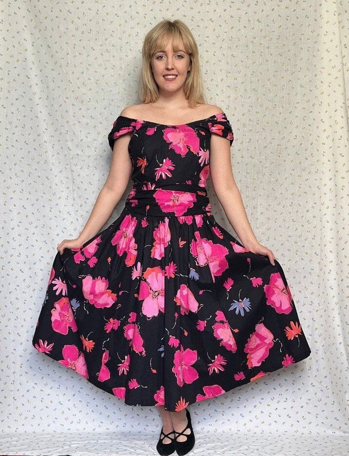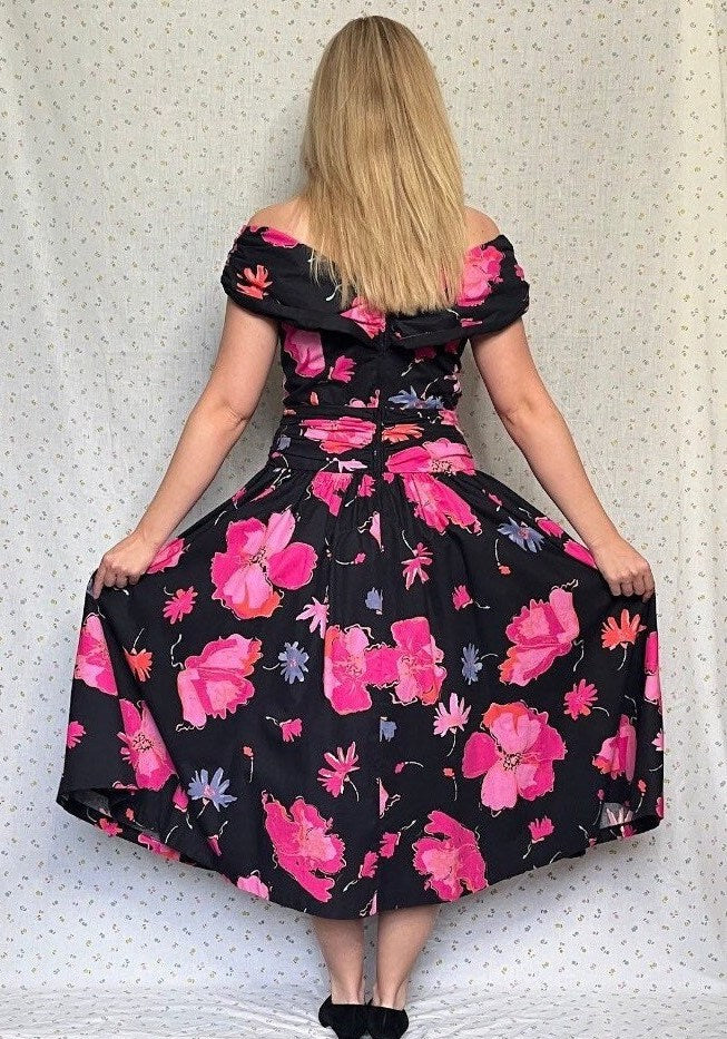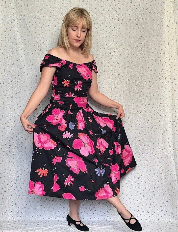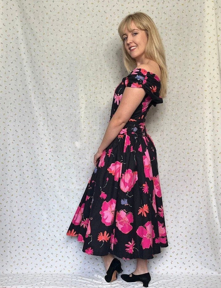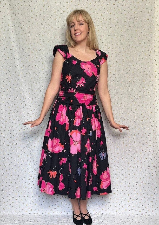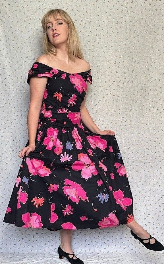 Vintage 1980’s "Laura Ashley" Black & Pink Floral Dress