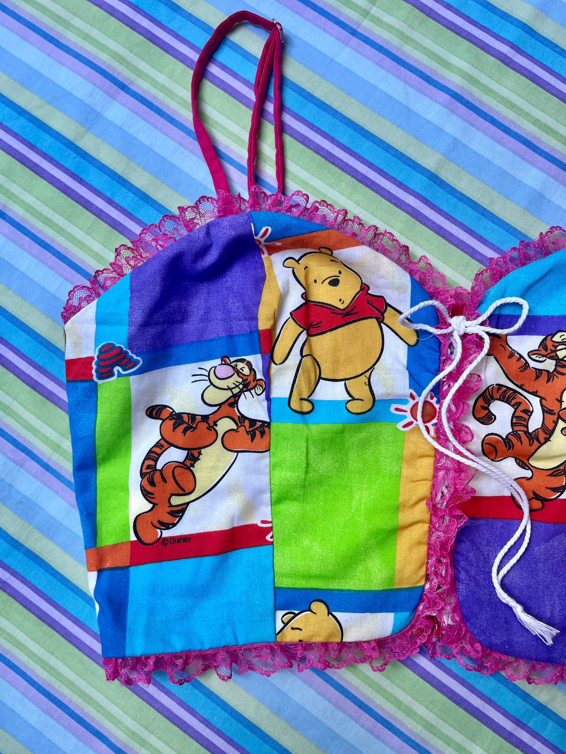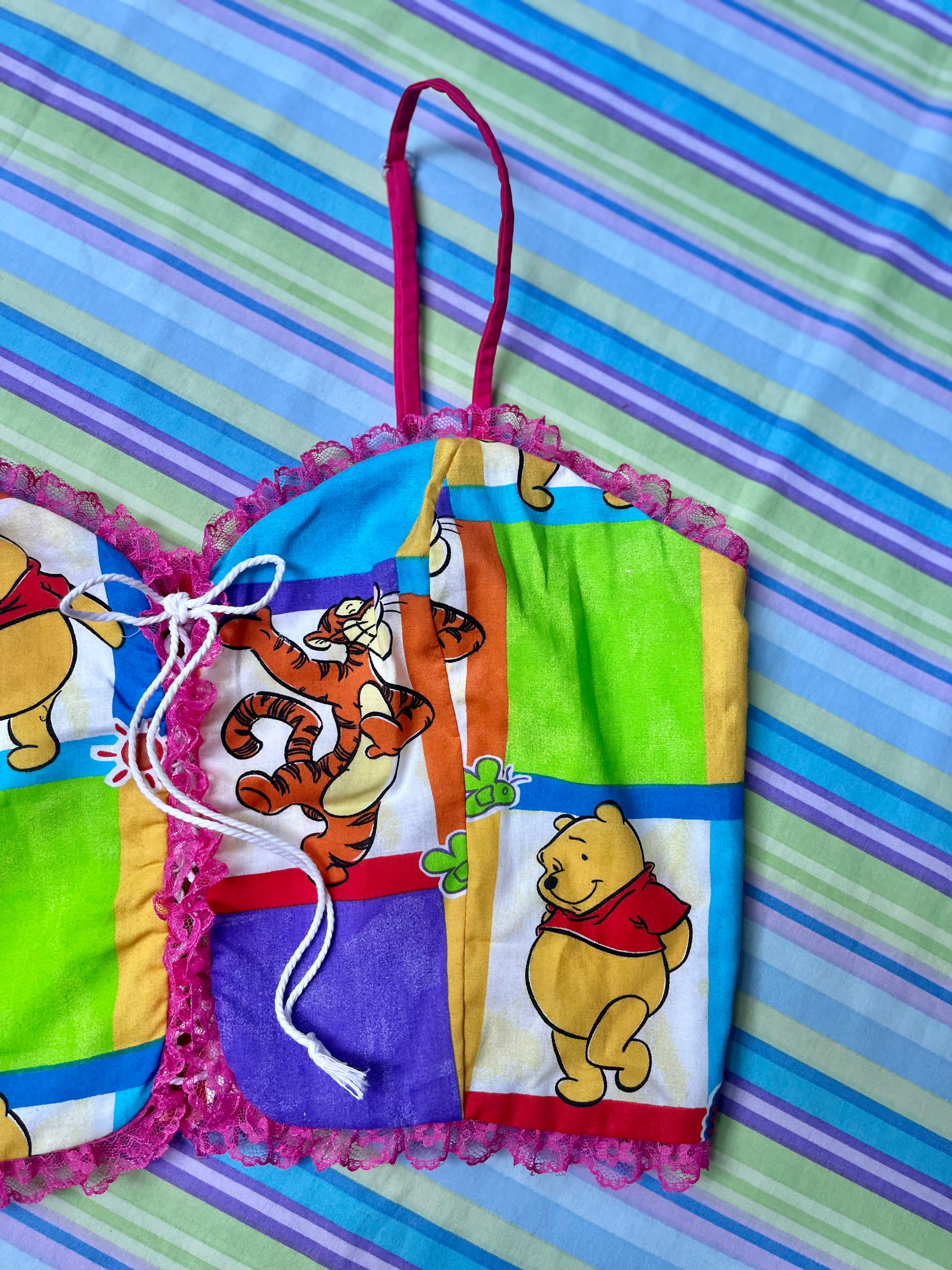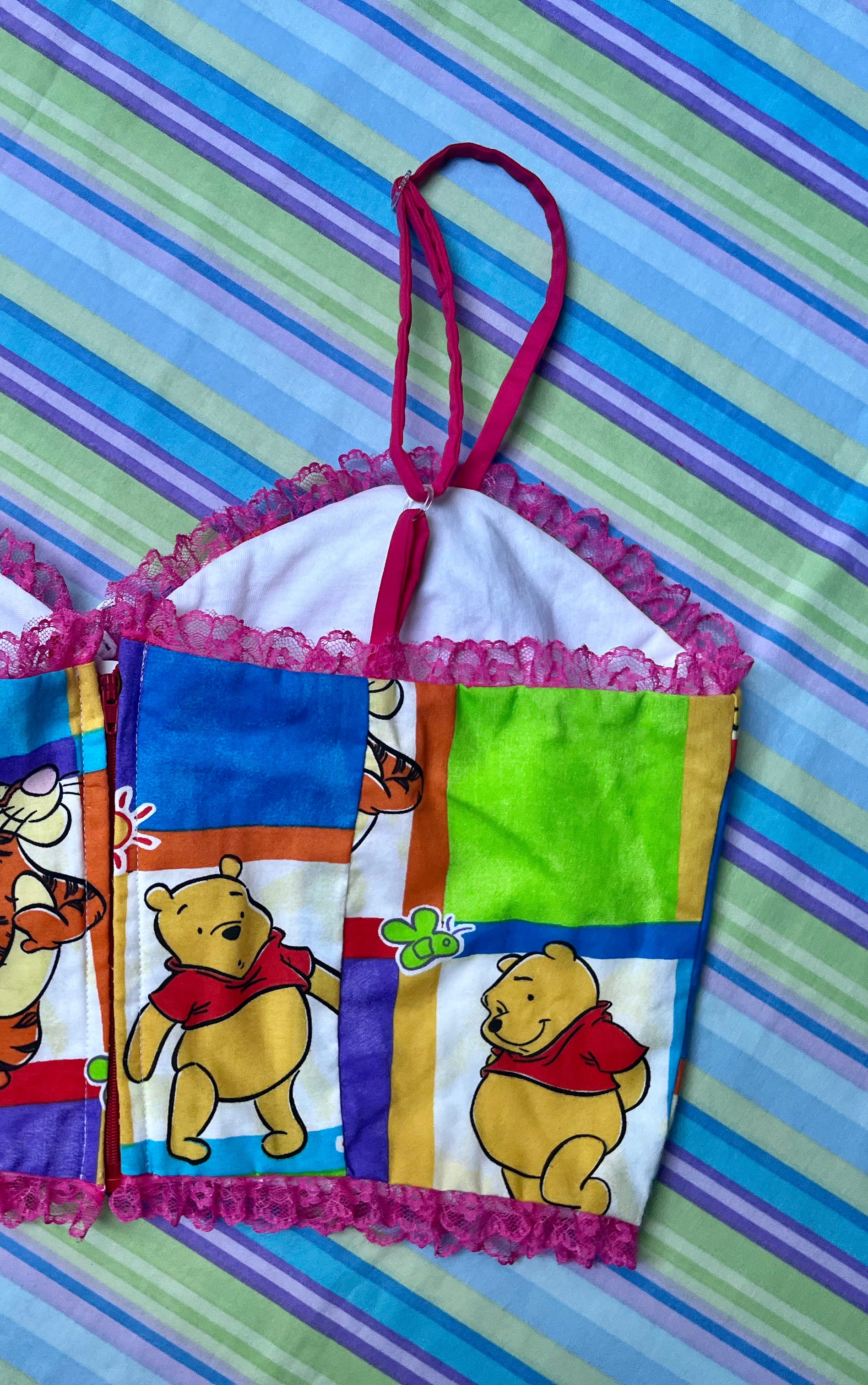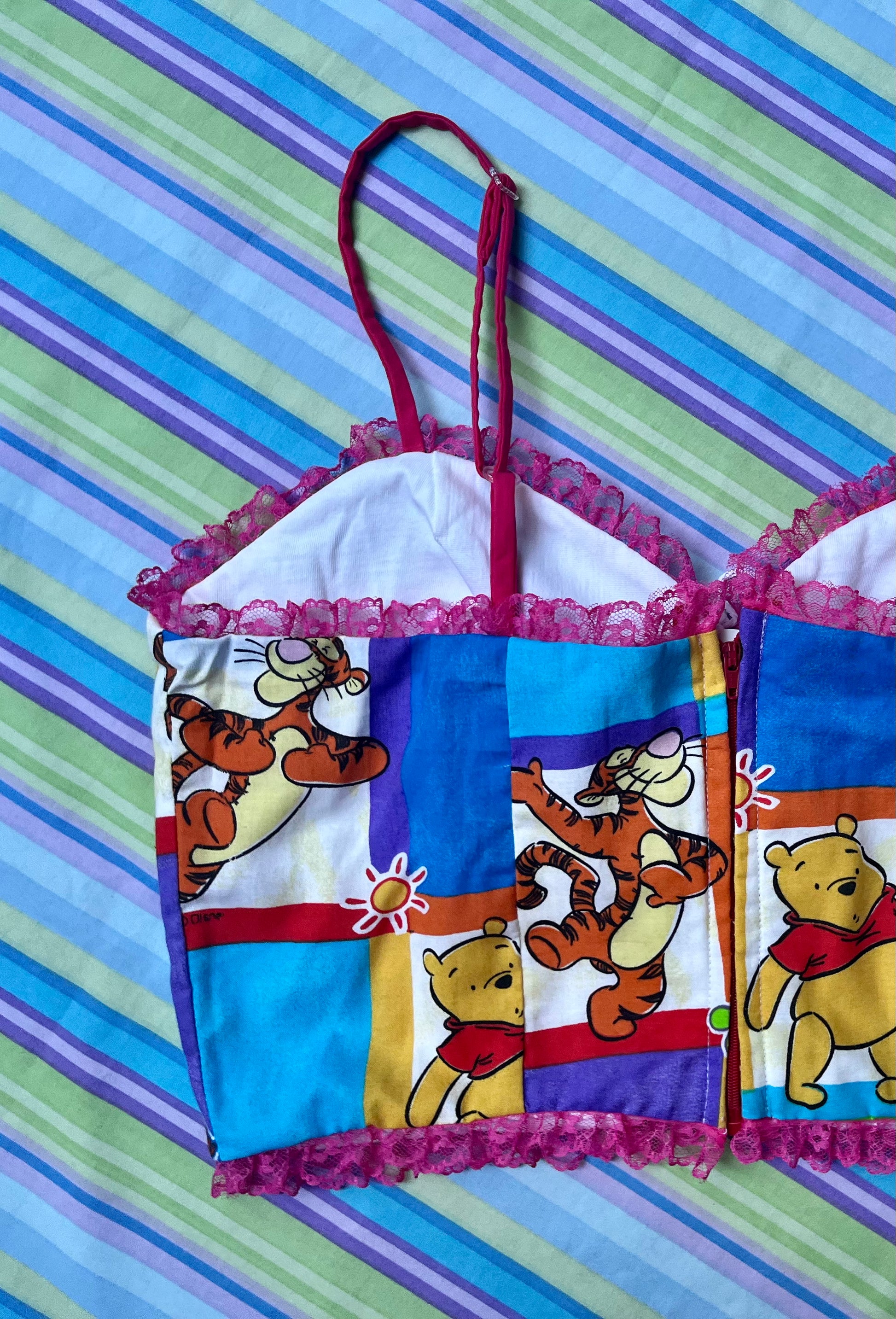 Using primarily bed linens, curtains, scrub tops, and other miscellaneous secondhand fabrics, we have made these corset tops as apart of our Nostalgia collection.
