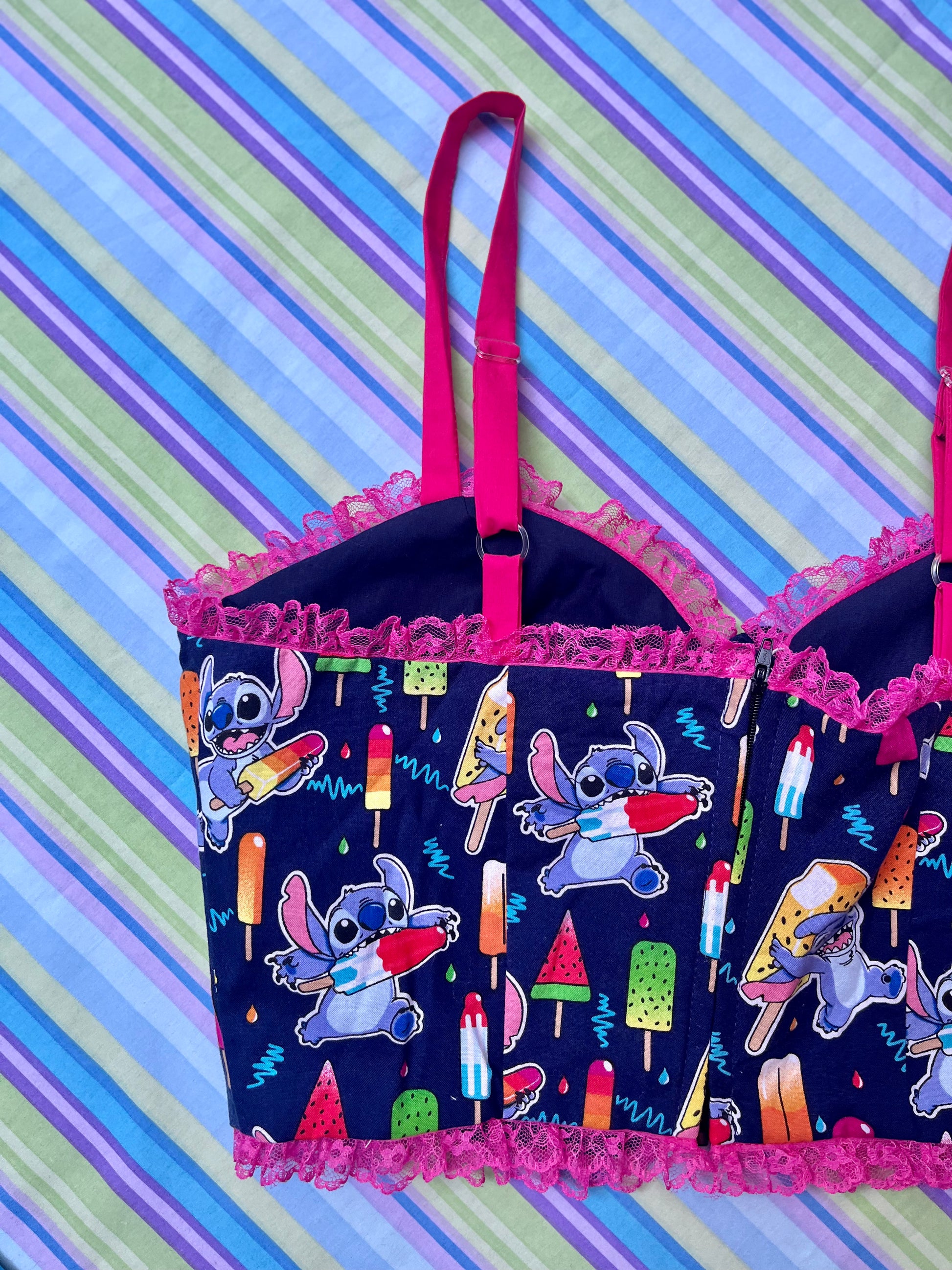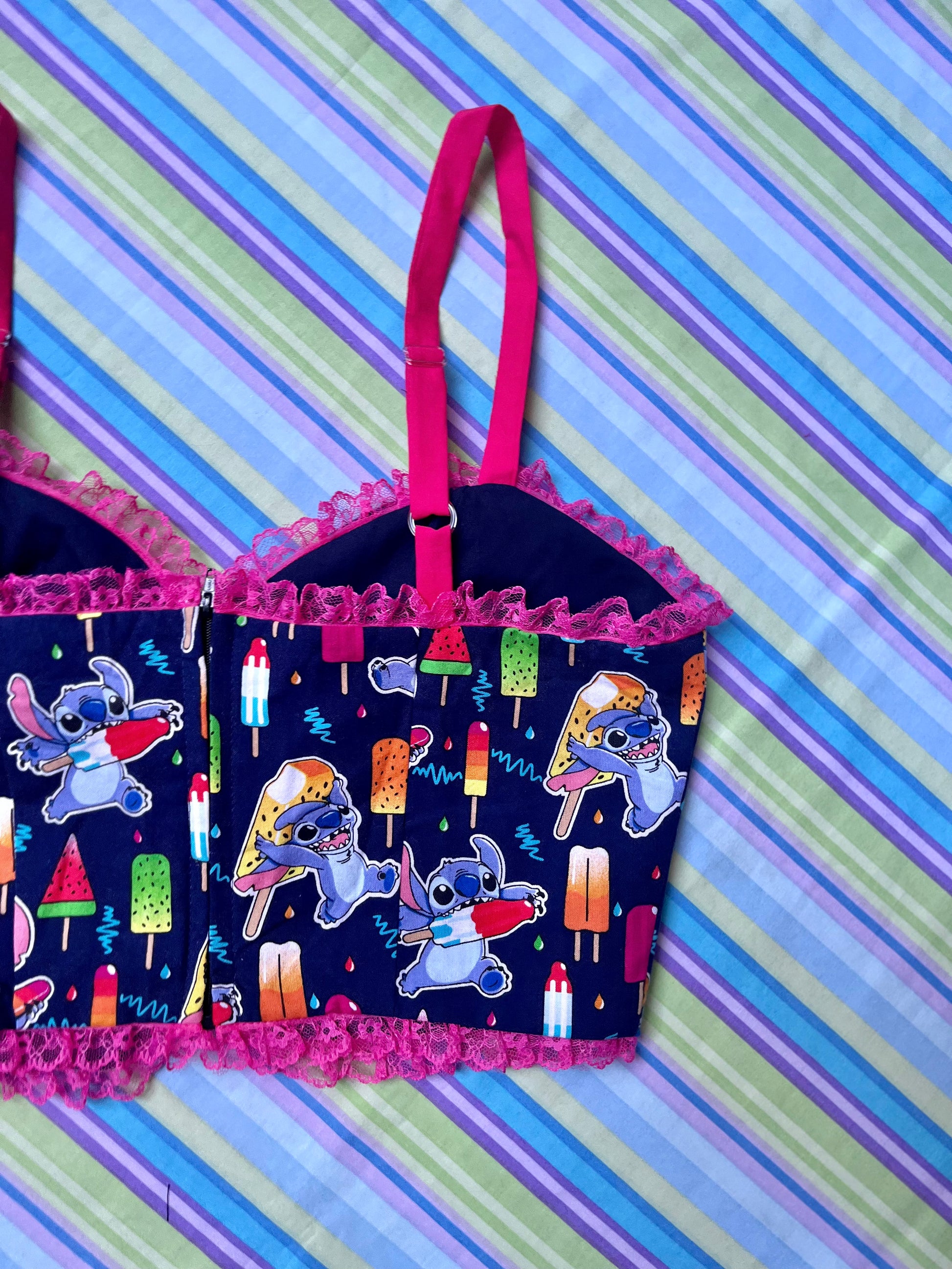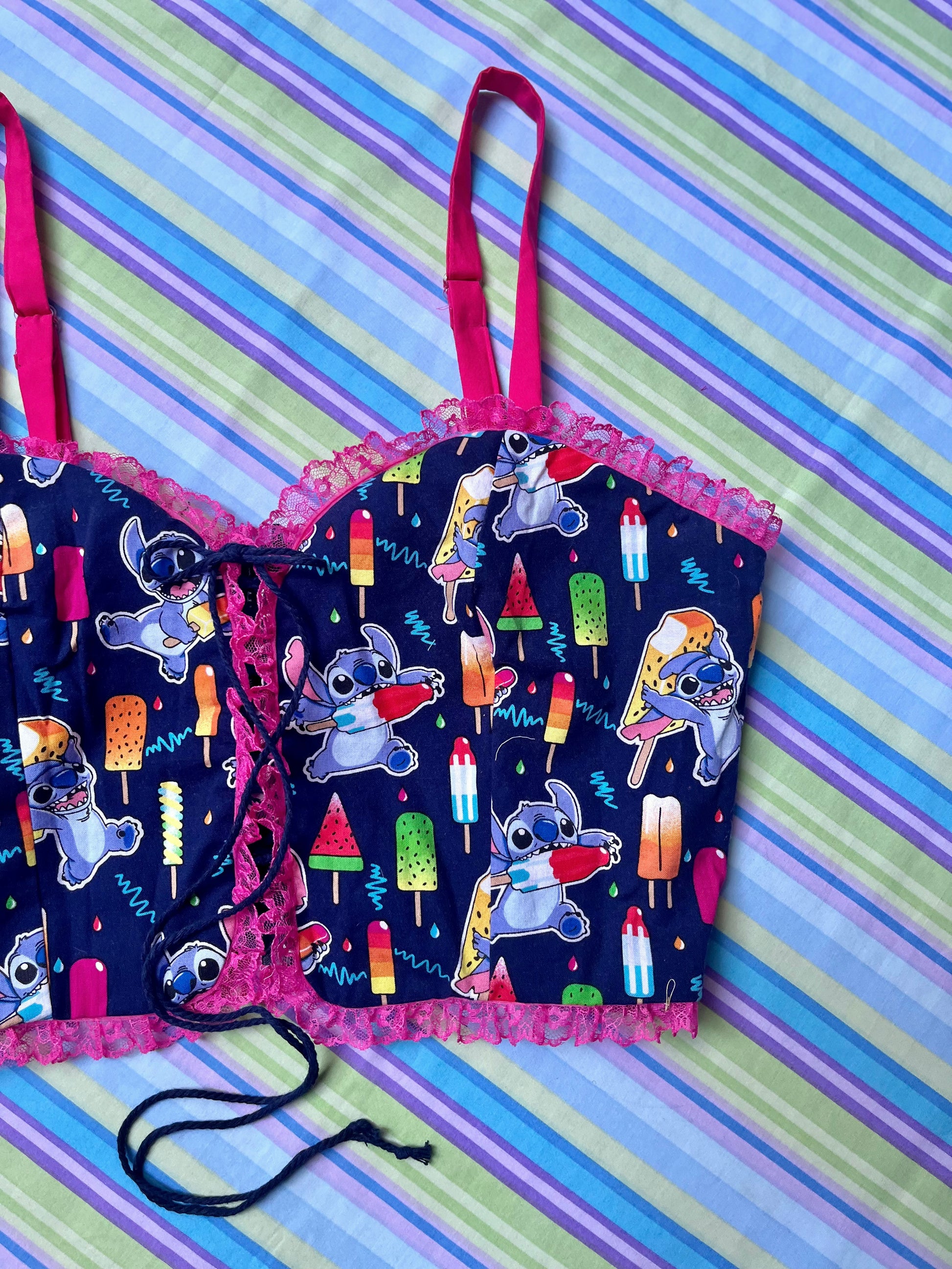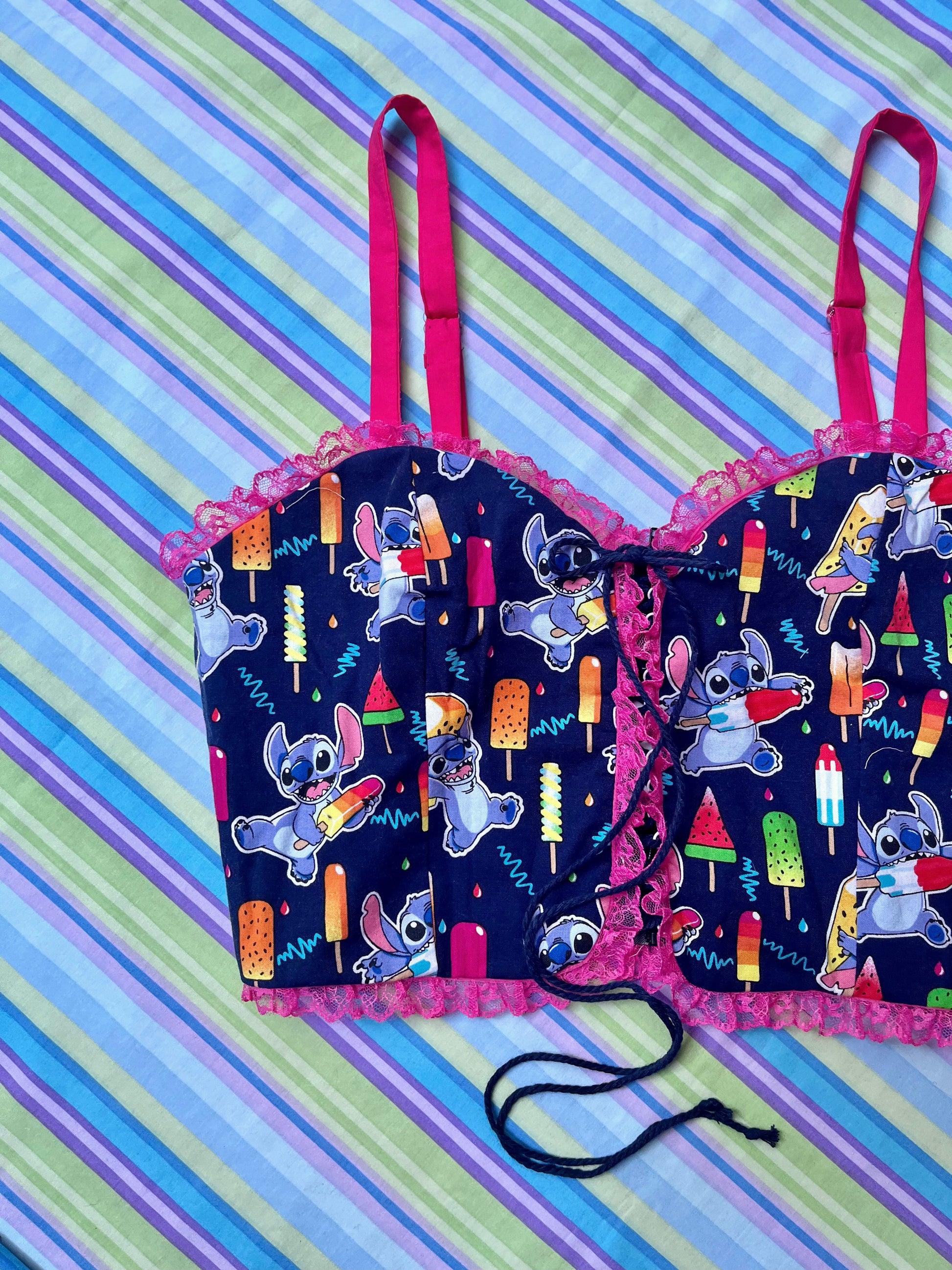 Using primarily bed linens, curtains, scrub tops, and other miscellaneous secondhand fabrics, we have made these corset tops as apart of our Nostalgia collection.
