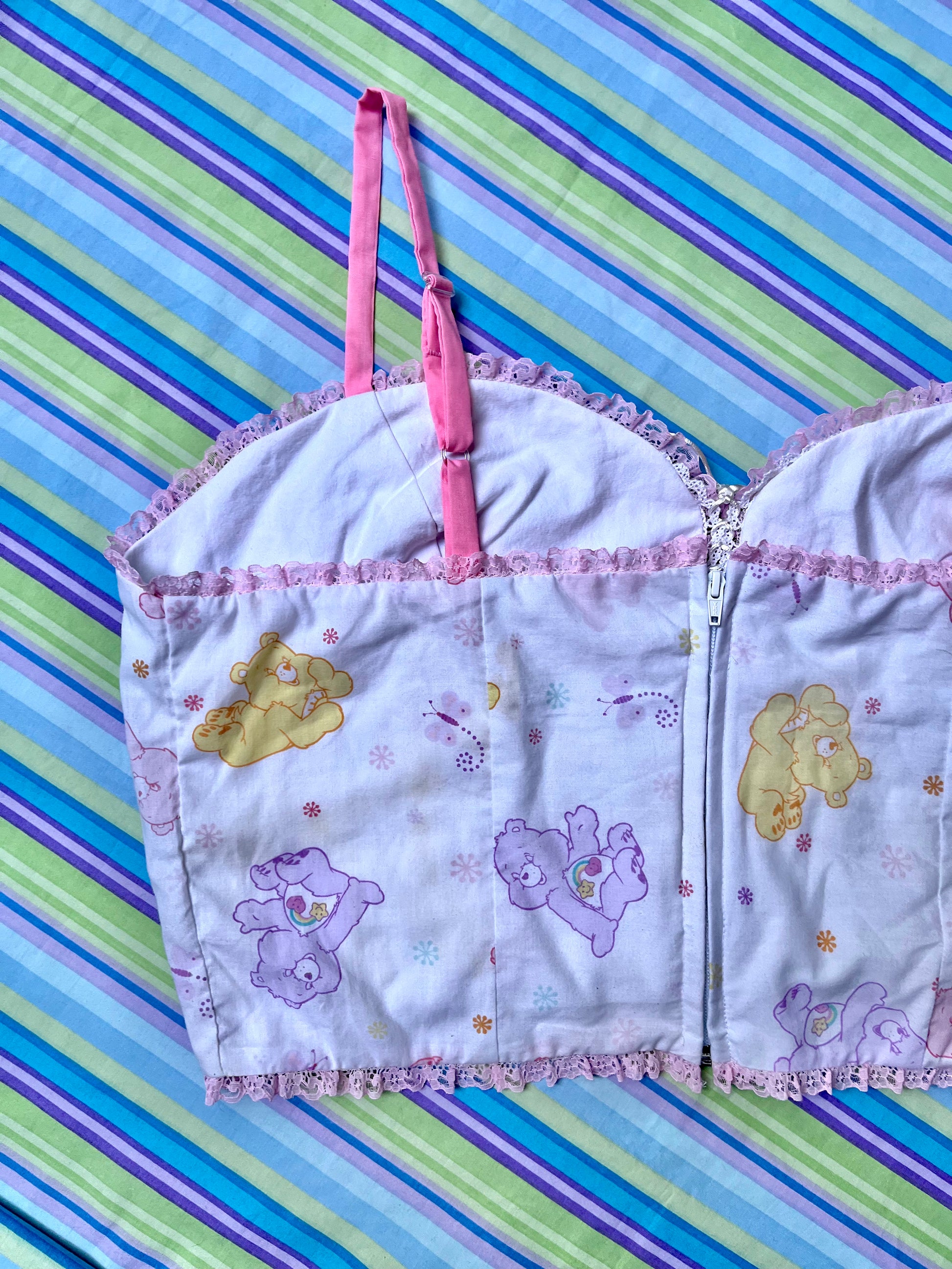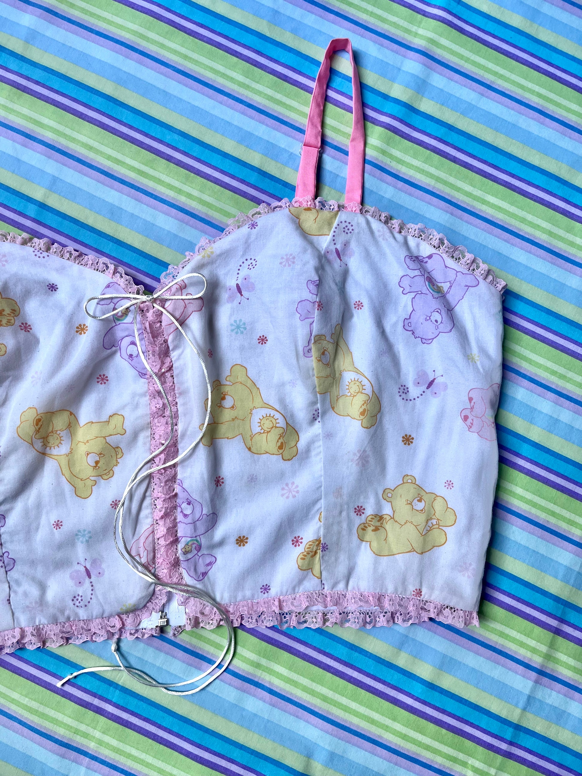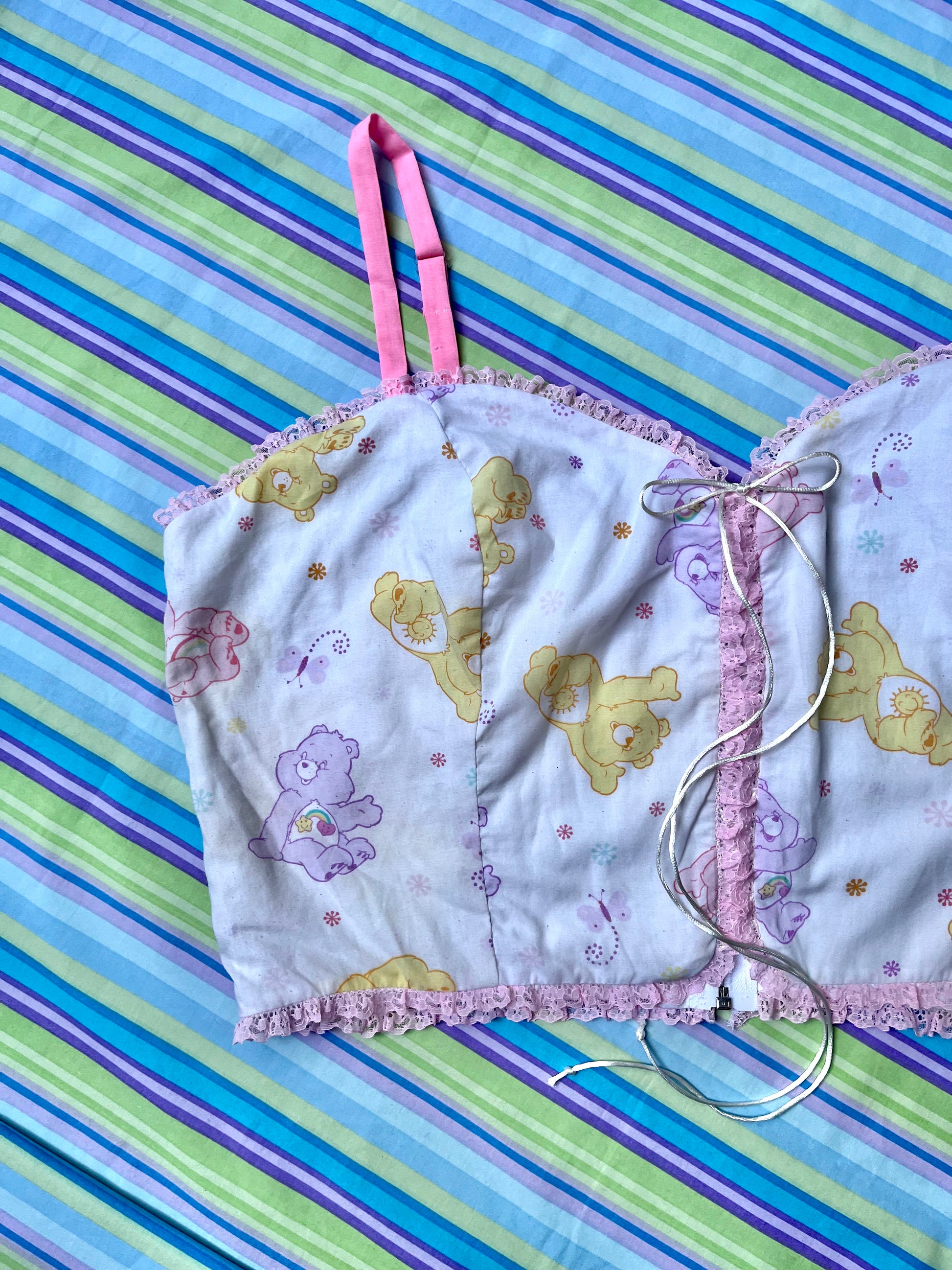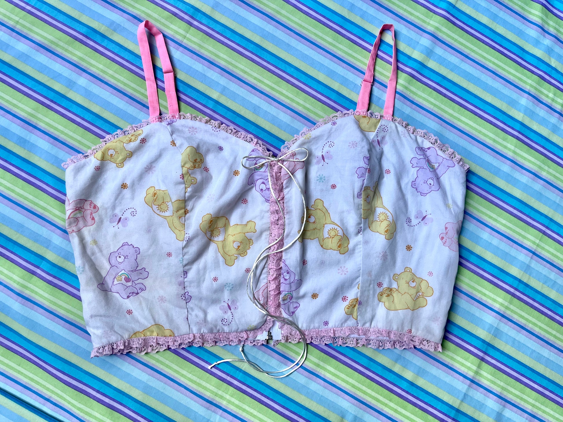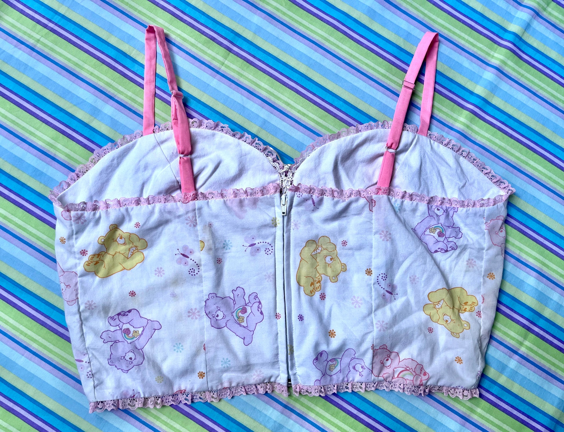 Using primarily bed linens, curtains, scrub tops, and other miscellaneous secondhand fabrics, we have made these corset tops as apart of our Nostalgia collection.