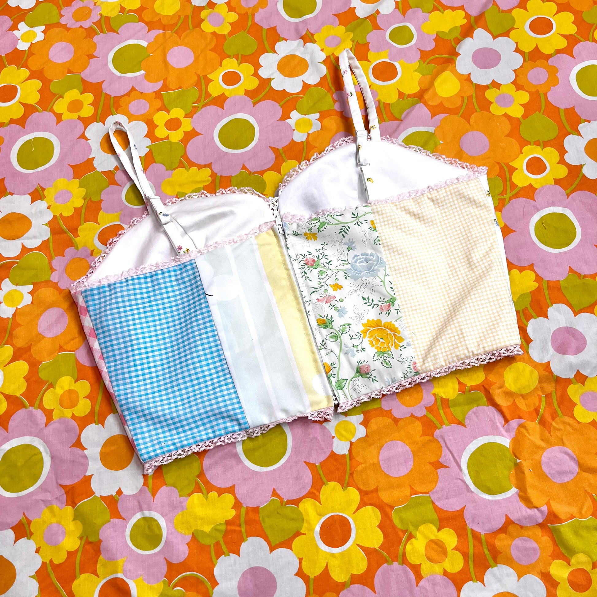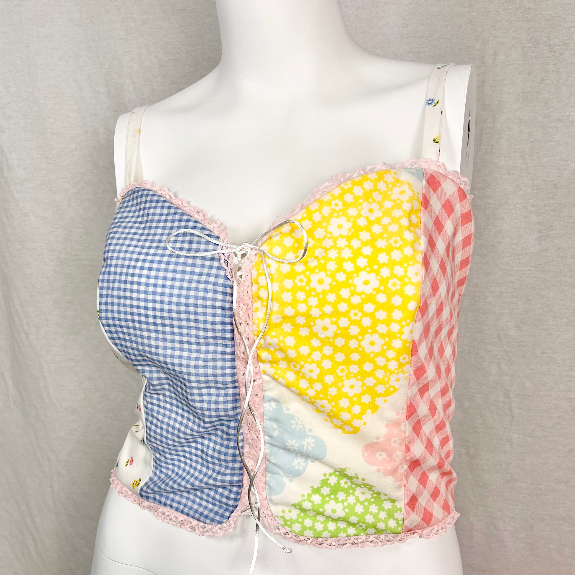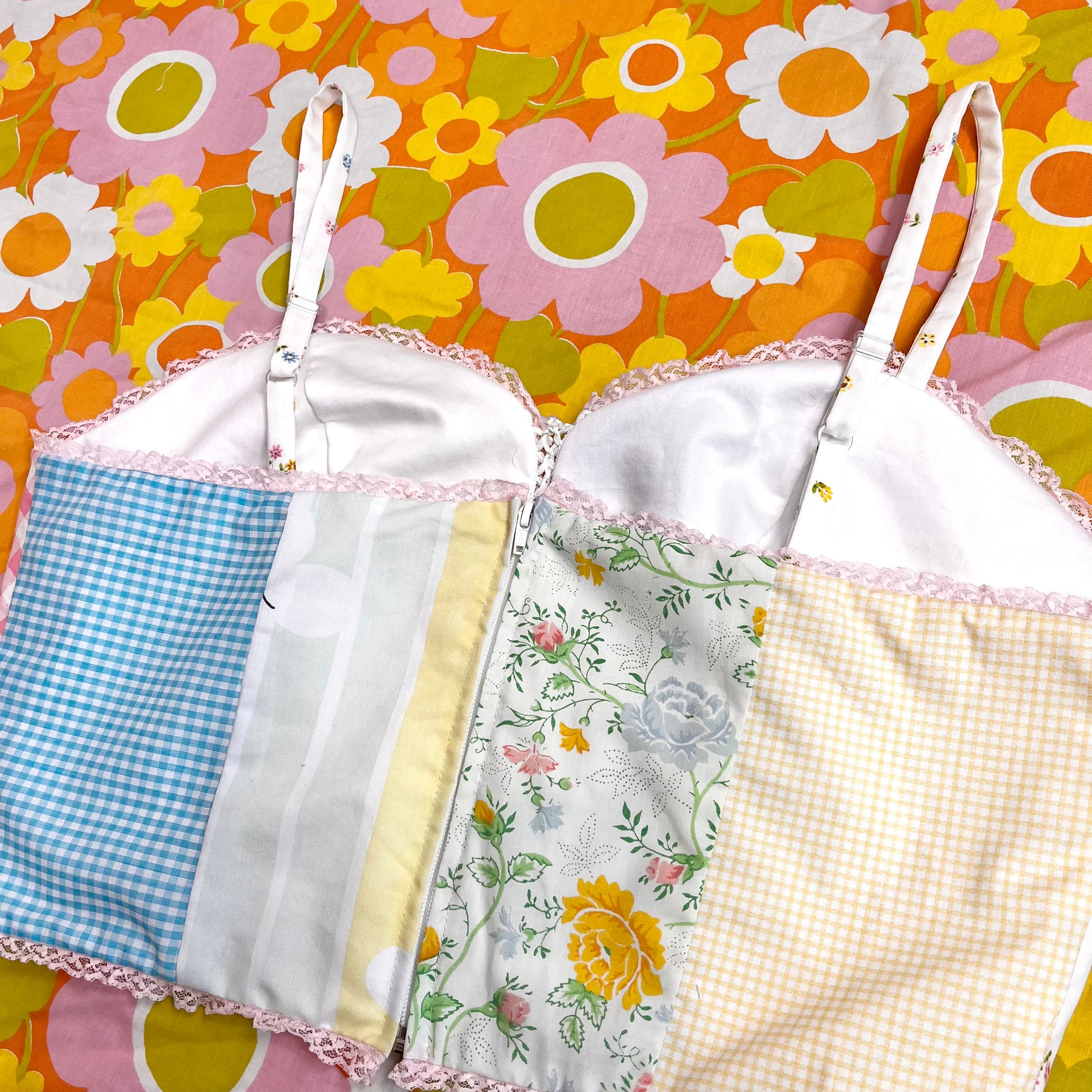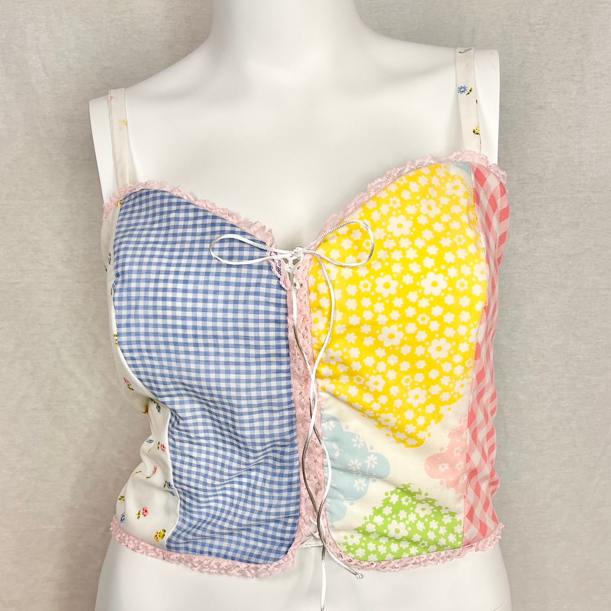 Using remnant fabric pieces from our “Picnic Collection” of dresses, we have made corset tops from any leftover prints and patterns from our Spring/Summer ‘23 dress collection. Every panel of the top is a different print and no two tops are made the same. There is a lace-up corset-front closure that can be used to adjust the fit and a zipper-back closure for easy access in-an-out of the garment. We’ve introduced new hardware into this design, as the straps now are fully adjustable to be able to accommodate even more shapes and sizes. Like our dresses, these tops are all lined in white cotton/poly-cotton blends to provide comfort and prevent any un-wanted fabric transparency. The corset tops are completely unique and one-of-a-kind while also minimizing our textile waste and keeping our carbon footprint low.