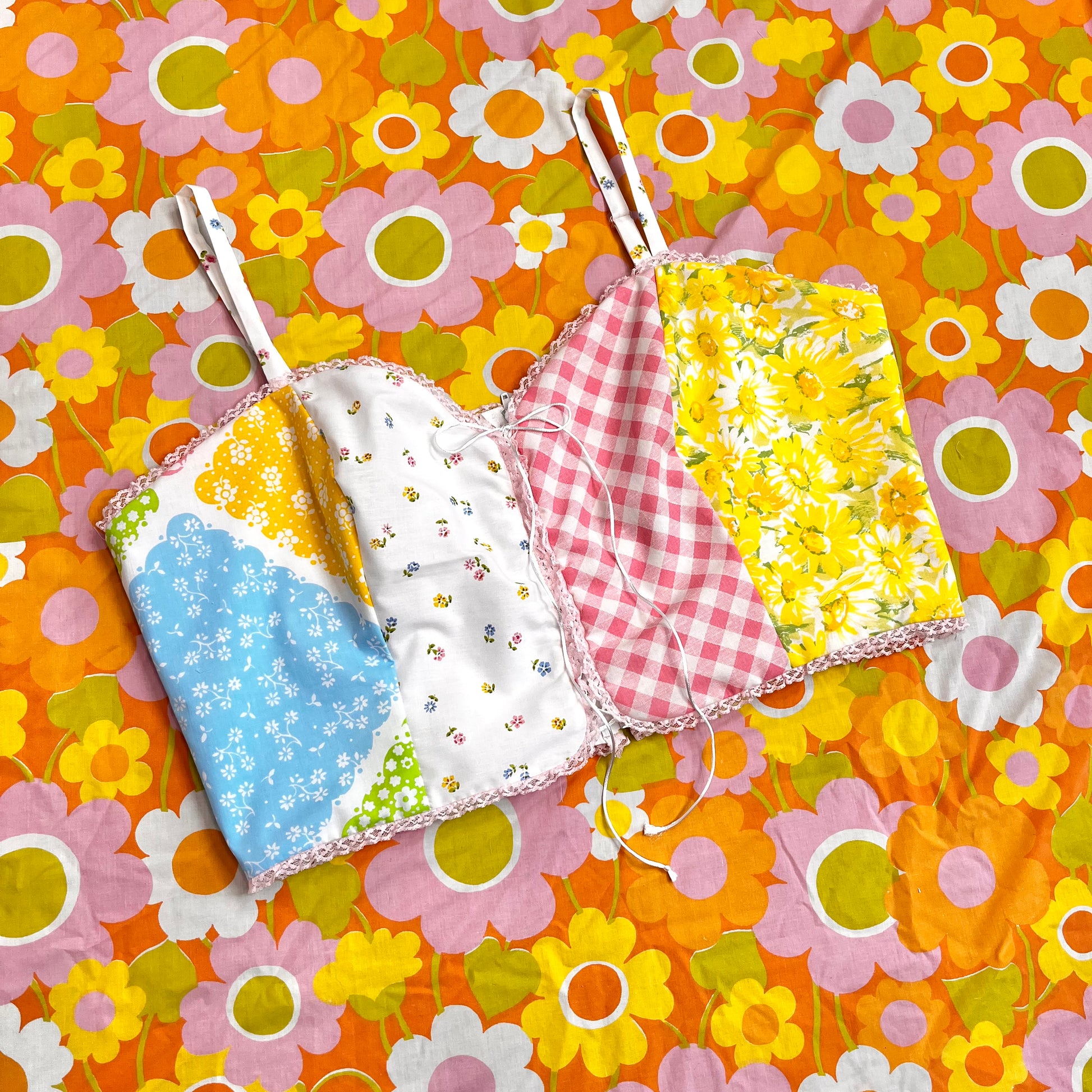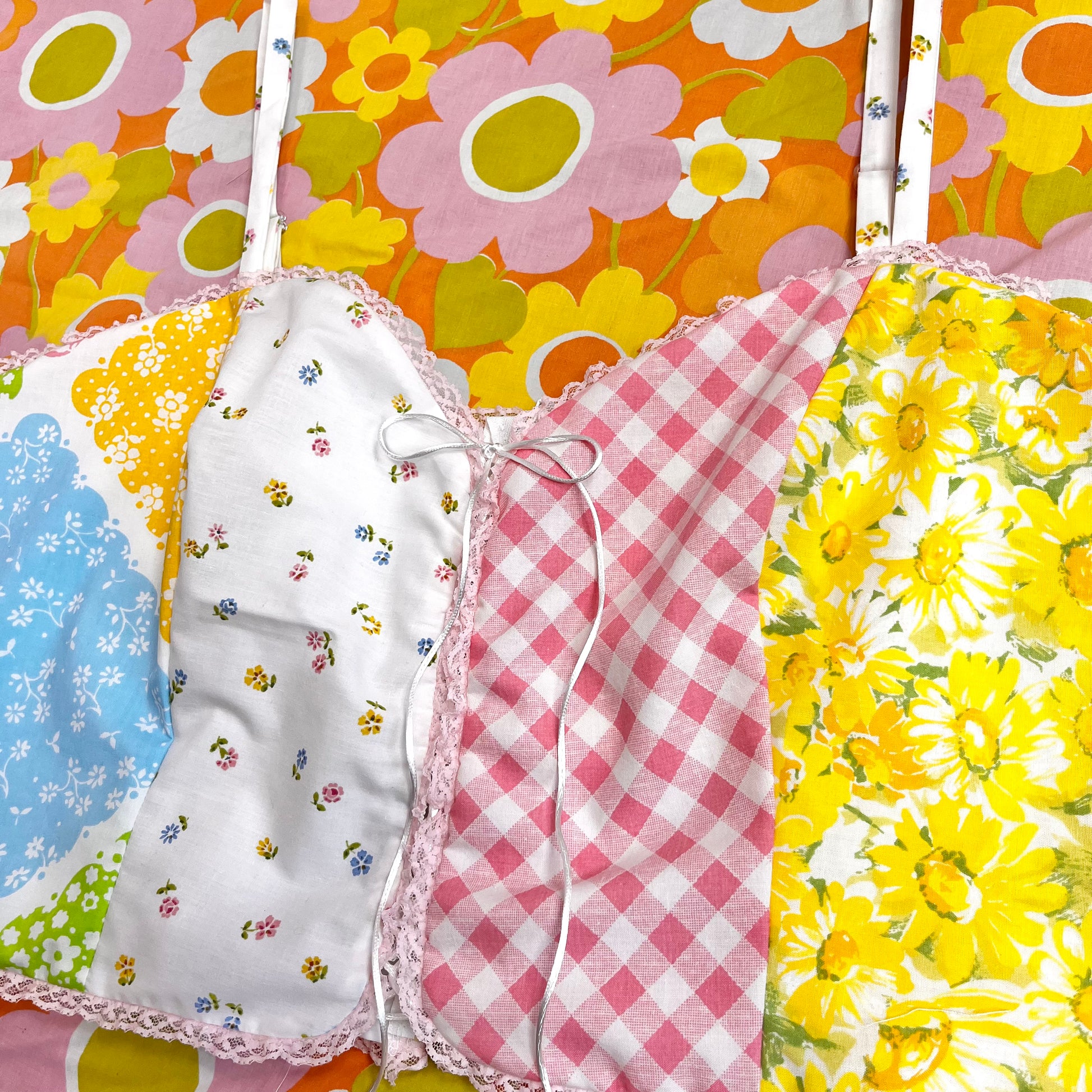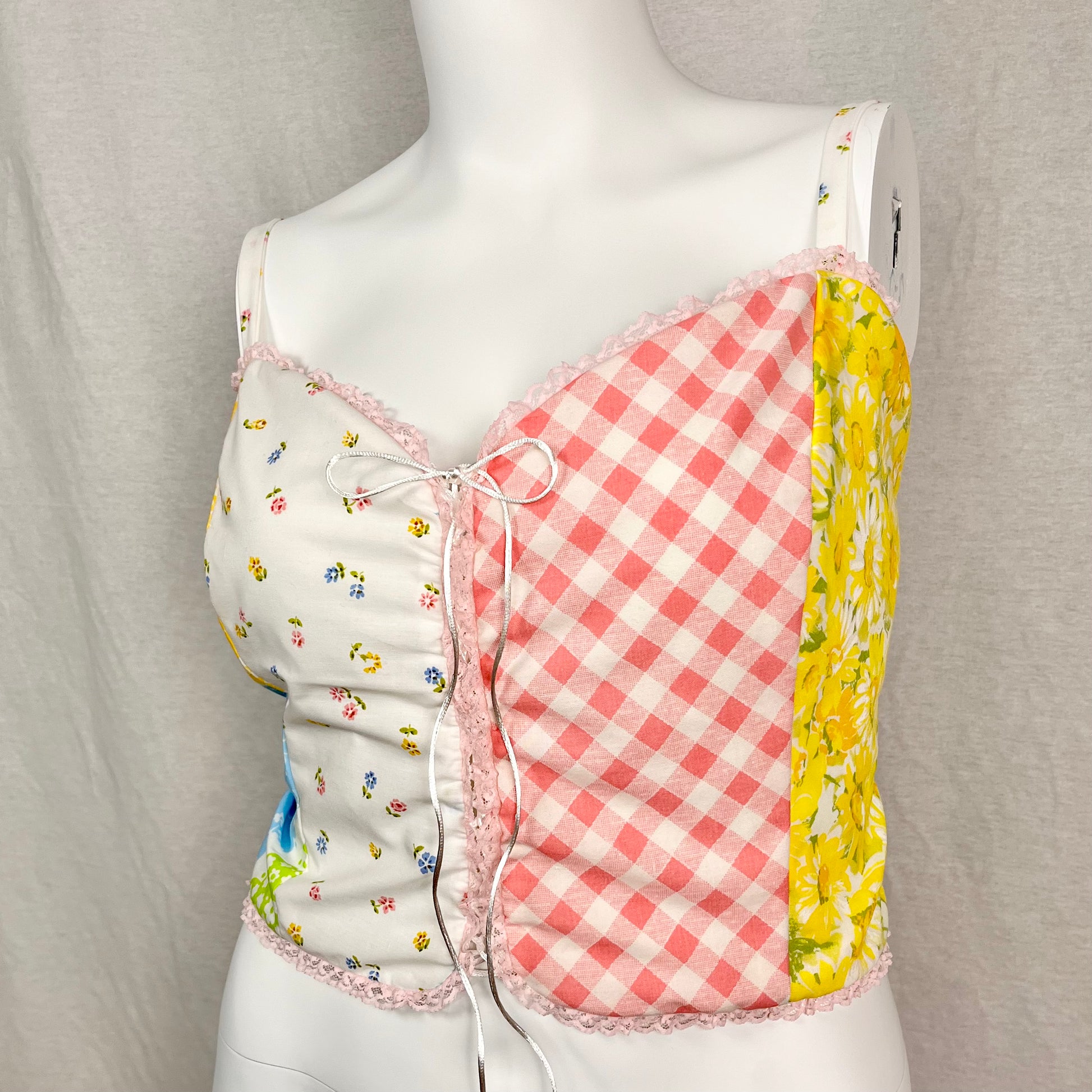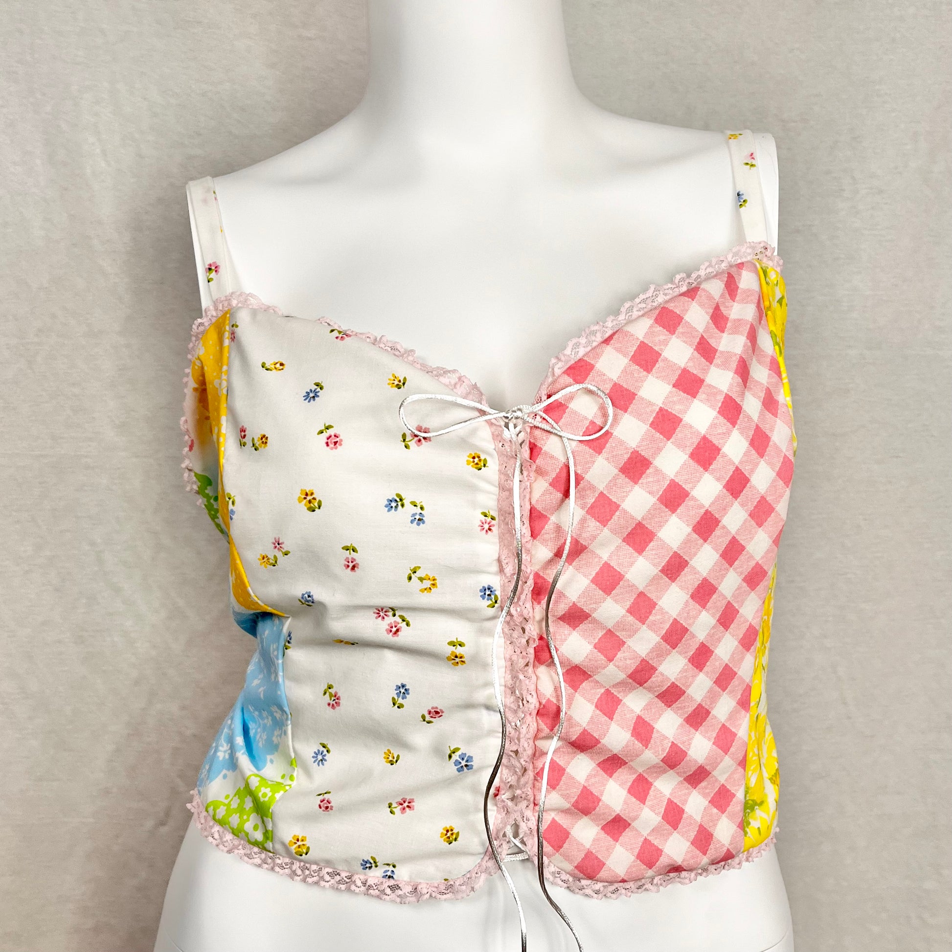 Using remnant fabric pieces from our “Picnic Collection” of dresses, we have made corset tops from any leftover prints and patterns from our Spring/Summer ‘23 dress collection. Every panel of the top is a different print and no two tops are made the same. There is a lace-up corset-front closure that can be used to adjust the fit and a zipper-back closure for easy access in-an-out of the garment. We’ve introduced new hardware into this design, as the straps now are fully adjustable to be able to accommodate even more shapes and sizes. Like our dresses, these tops are all lined in white cotton/poly-cotton blends to provide comfort and prevent any un-wanted fabric transparency. The corset tops are completely unique and one-of-a-kind while also minimizing our textile waste and keeping our carbon footprint low.