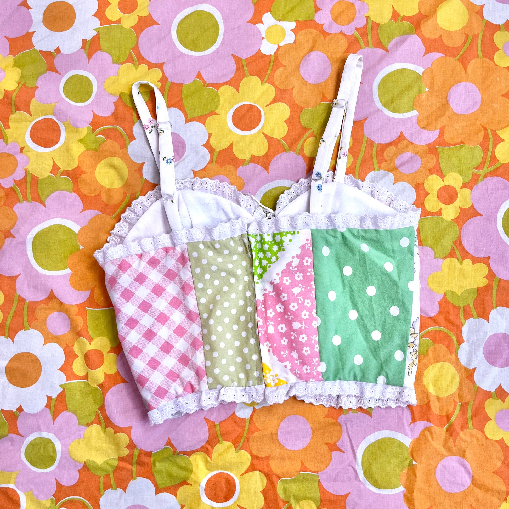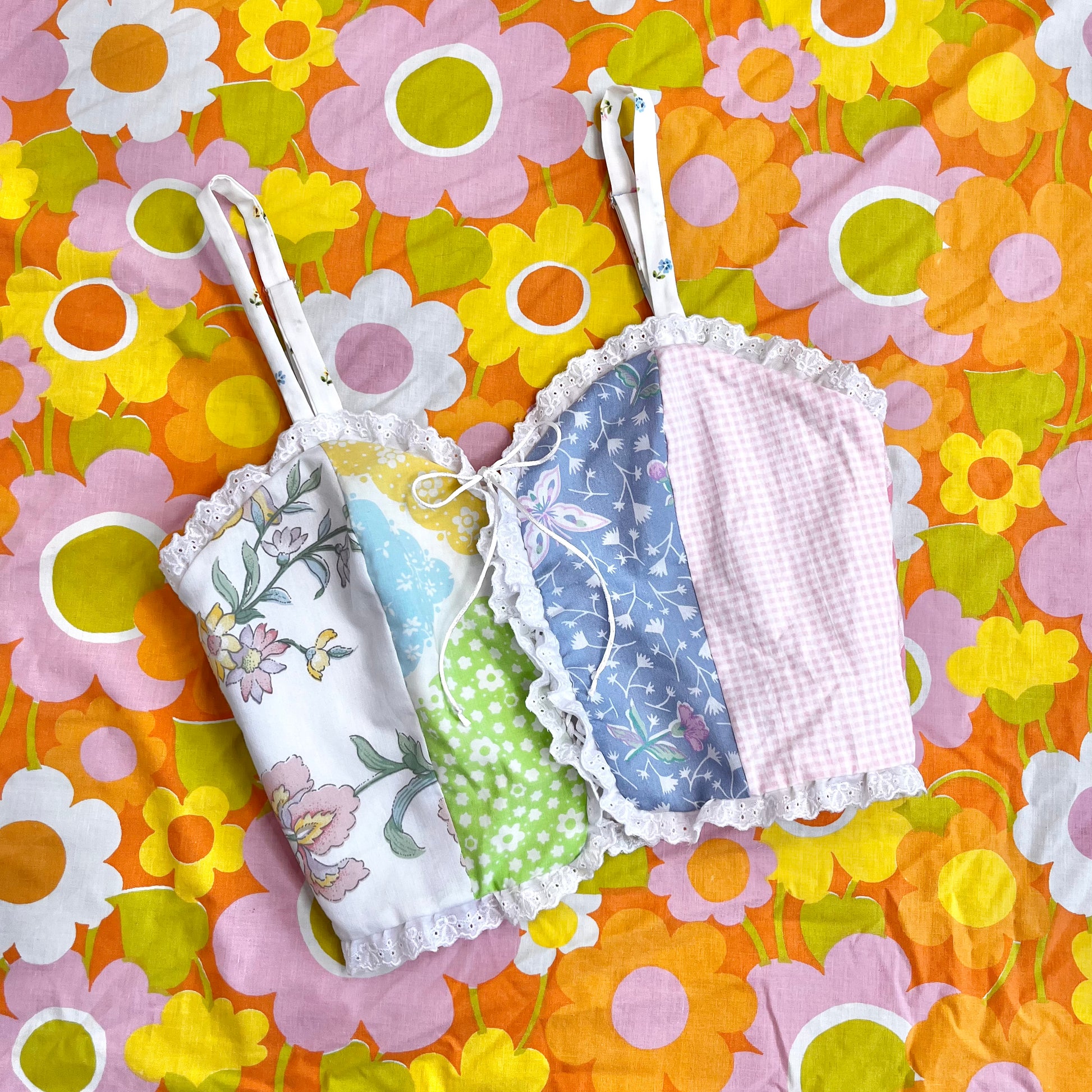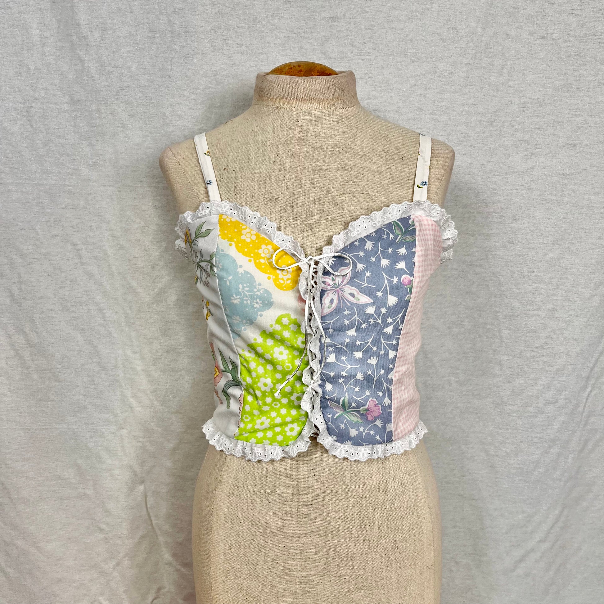Using remnant fabric pieces from our “Picnic Collection” of dresses, we have made corset tops from any leftover prints and patterns from our Spring/Summer ‘23 dress collection. Every panel of the top is a different print and no two tops are made the same. There is a lace-up corset-front closure that can be used to adjust the fit and a zipper-back closure for easy access in-an-out of the garment. We’ve introduced new hardware into this design, as the straps now are fully adjustable to be able to accommodate even more shapes and sizes. Like our dresses, these tops are all lined in white cotton/poly-cotton blends to provide comfort and prevent any un-wanted fabric transparency. The corset tops are completely unique and one-of-a-kind while also minimizing our textile waste and keeping our carbon footprint low.