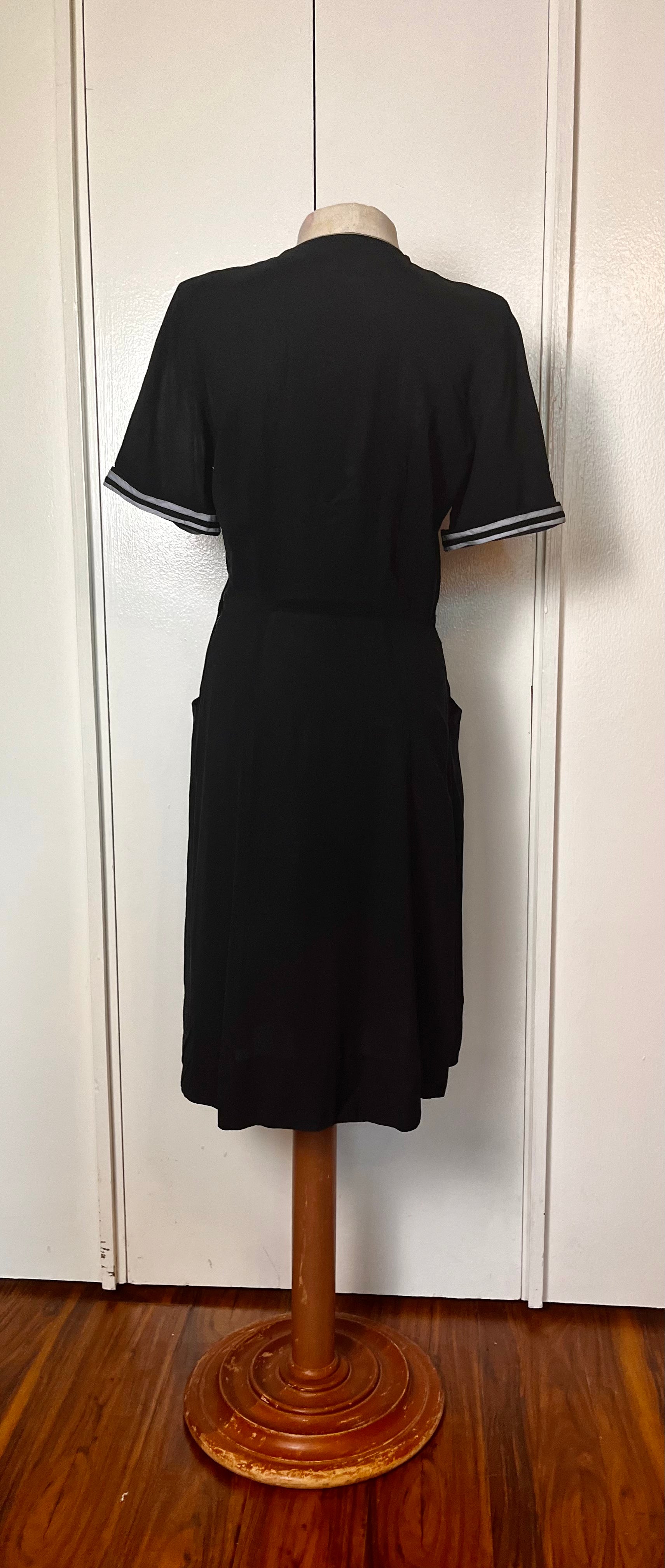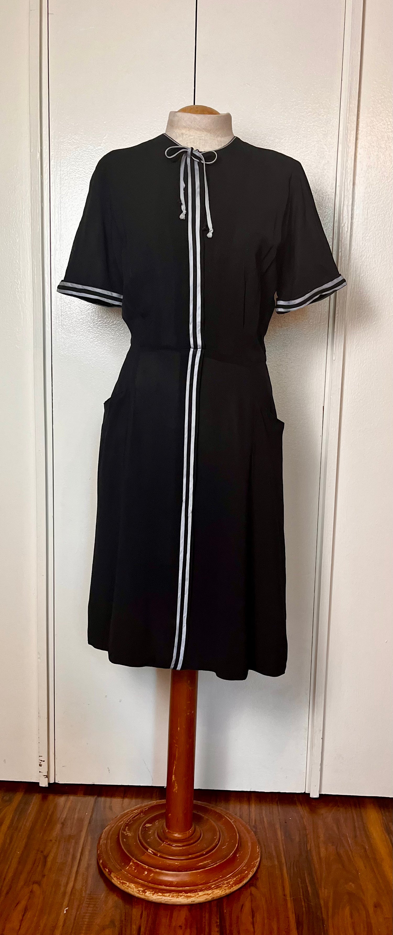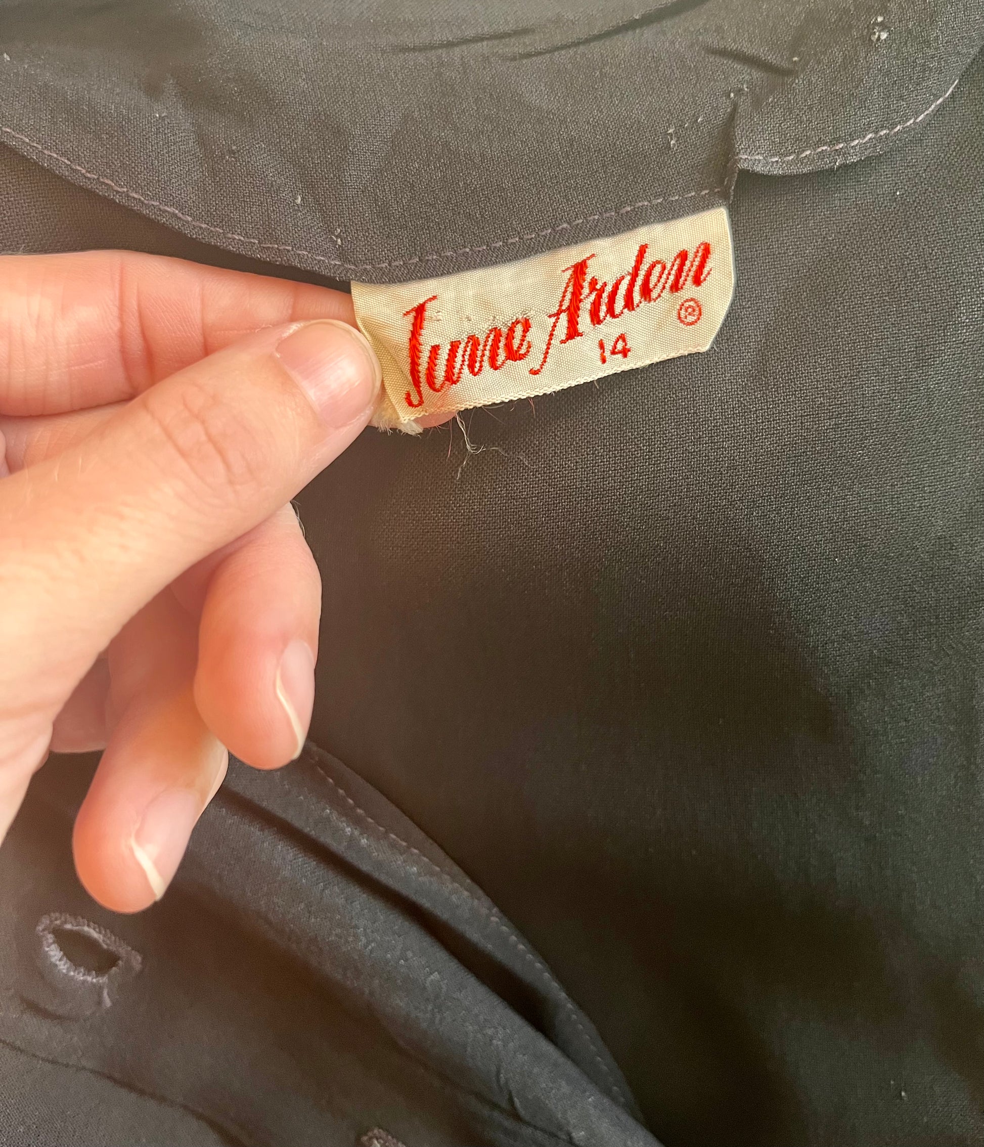 Vintage 1950's "Jane Arden" Black and Blue Rayon Midi Dress
